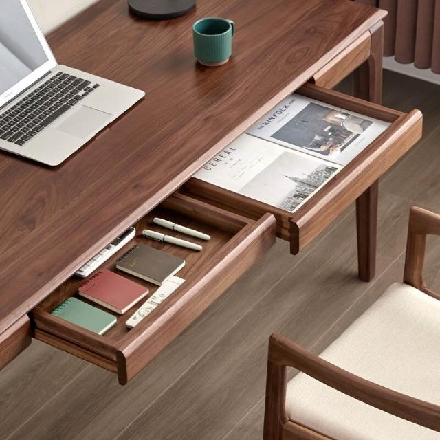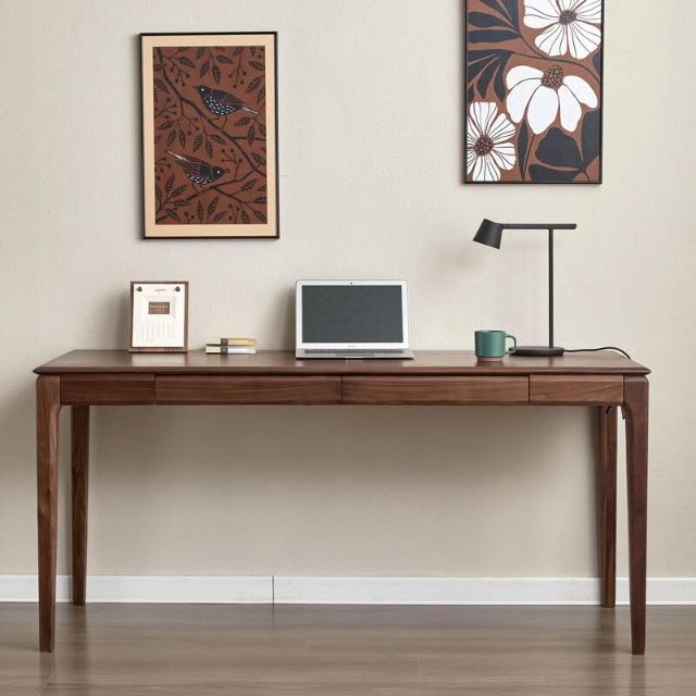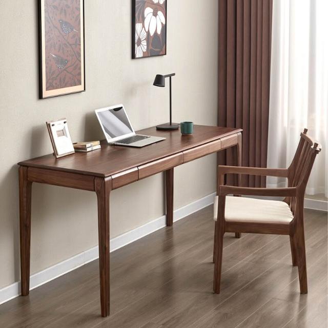 北美黑胡桃木書桌 簡約全實木電腦桌 北歐雙人學習桌櫻桃木辦公桌