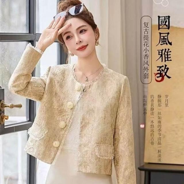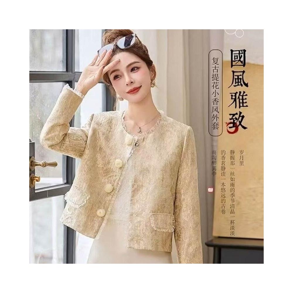 新中式國風短款外套女春秋款氣質流行小香風復古法式顯瘦提花上衣