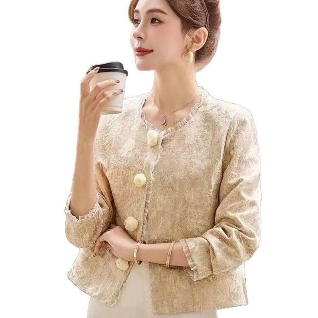 新中式國風短款外套女春秋款氣質流行小香風復古法式顯瘦提花上衣