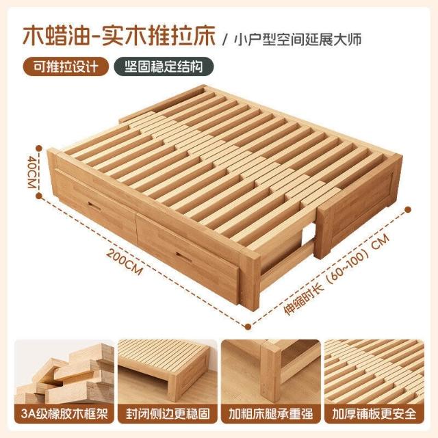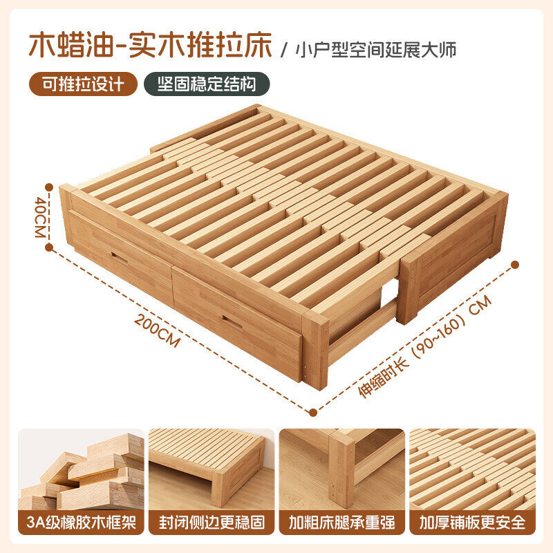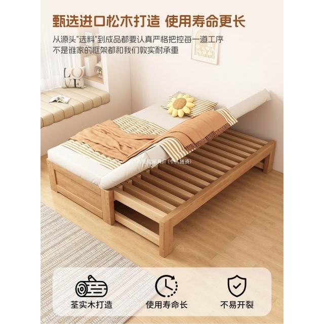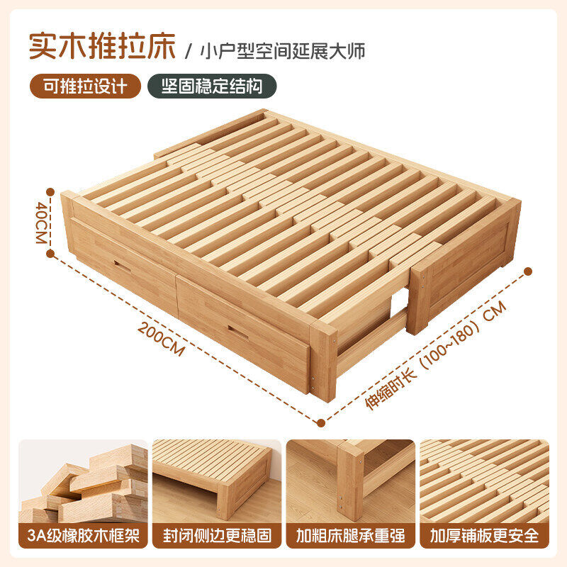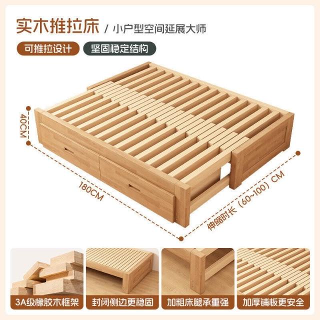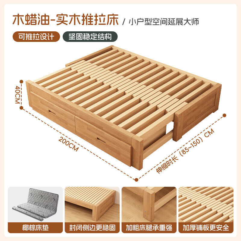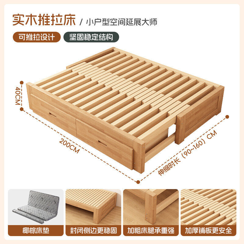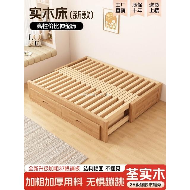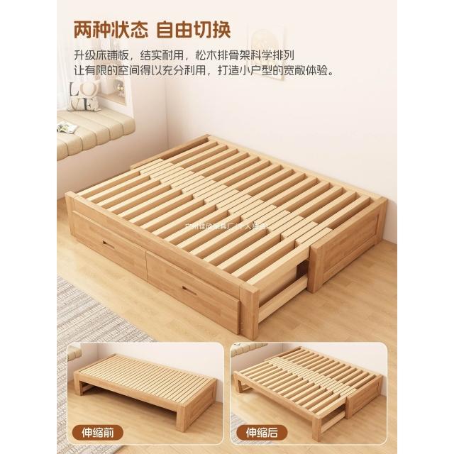 橡膠木伸縮床折疊兩用沙發床小戶型客廳榻榻米床多功能實木抽拉床