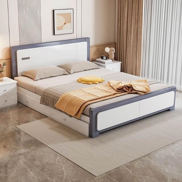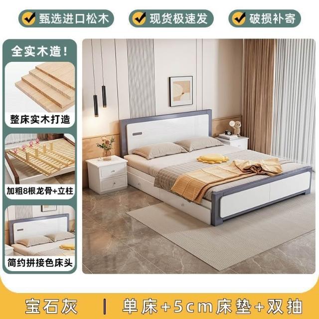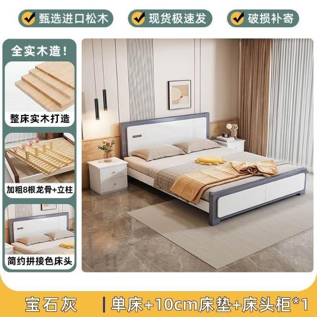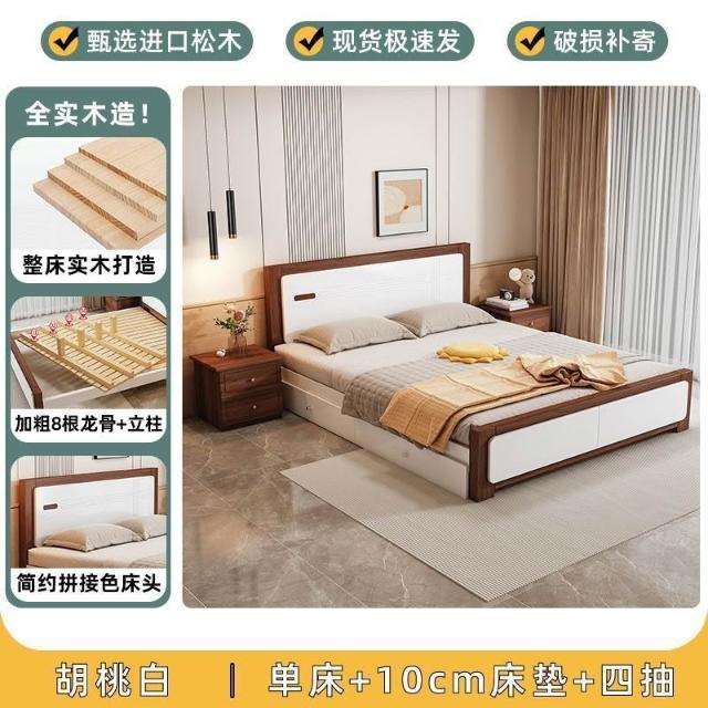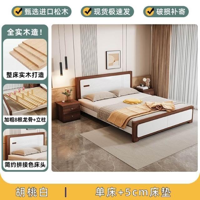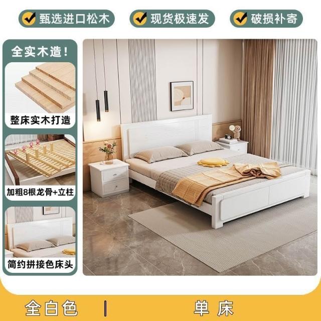 實木床現代簡約家用1.8米主臥雙人床1.5m單人床1米經濟型儲物大床