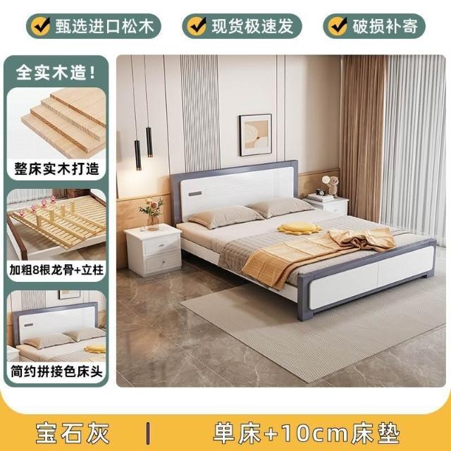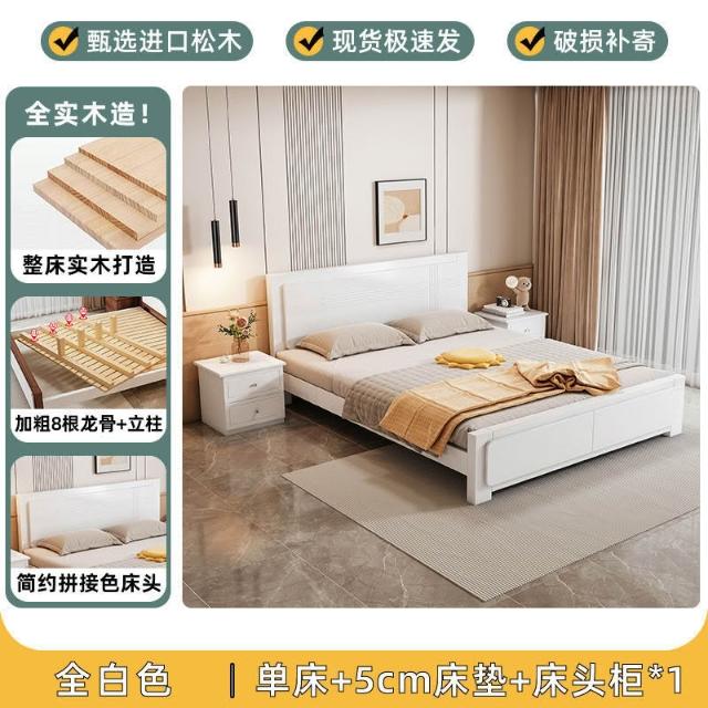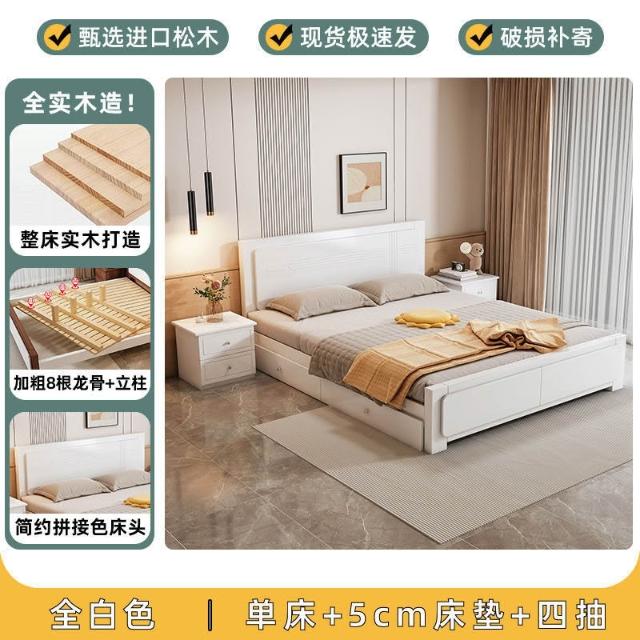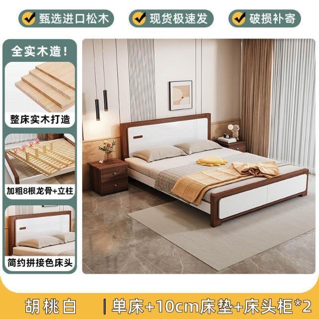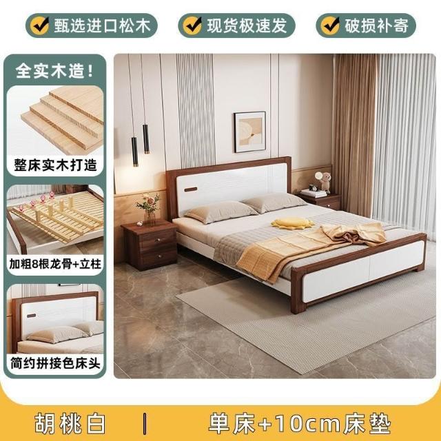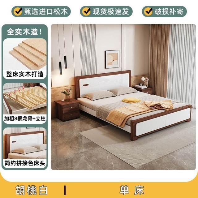 實木床現代簡約家用1.8米主臥雙人床1.5m單人床1米經濟型儲物大床