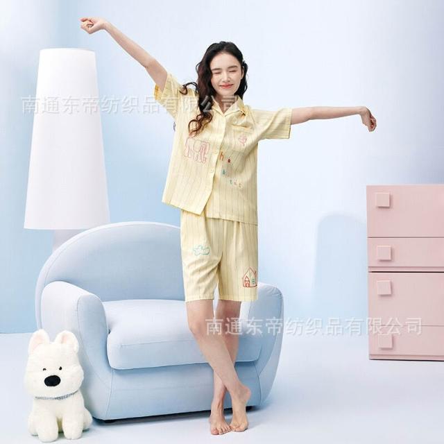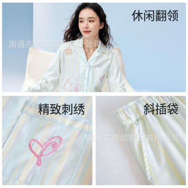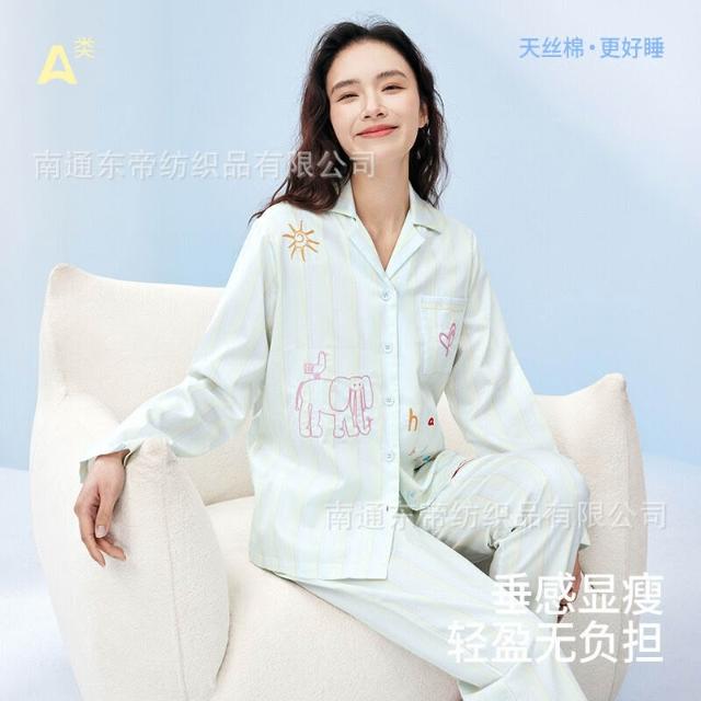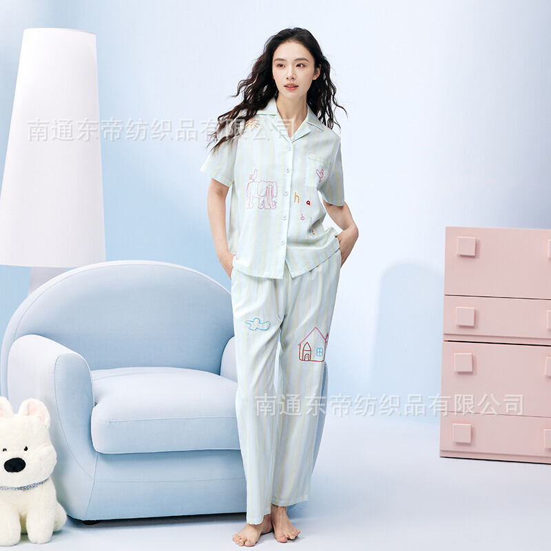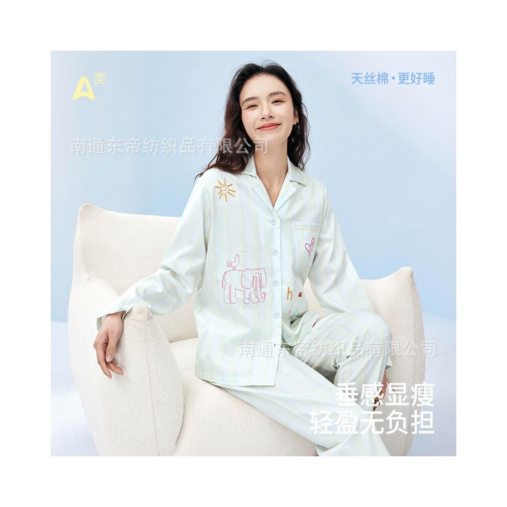 天絲棉萊賽爾睡衣女薄款動物刺繡春夏顯白女士睡衣家居服套裝