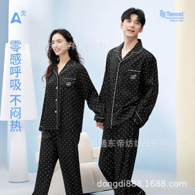 100%萊賽爾天絲睡衣女春夏季長袖長褲情侶睡衣家居服套裝可外穿