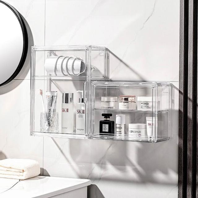 透明手辦盲盒展示櫃吧唧痛櫃化妝品收納盒亞克力置物架壁掛展示架