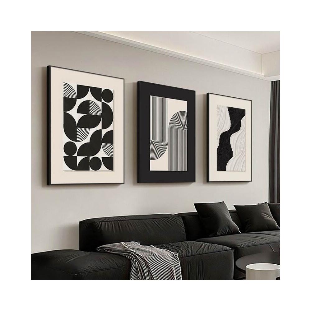 工廠直發 現代簡約客廳裝飾畫三聯黑白幾何組合抽象極簡沙發背景墻掛畫壁畫
