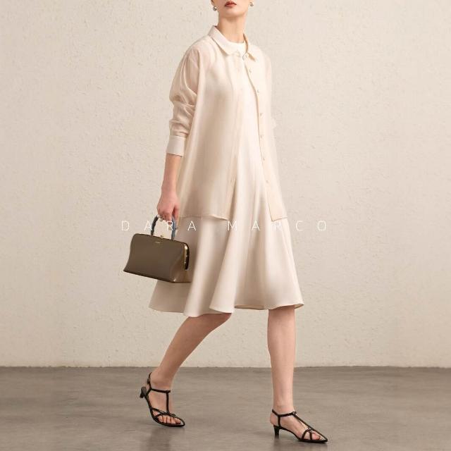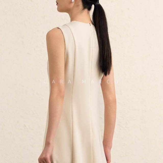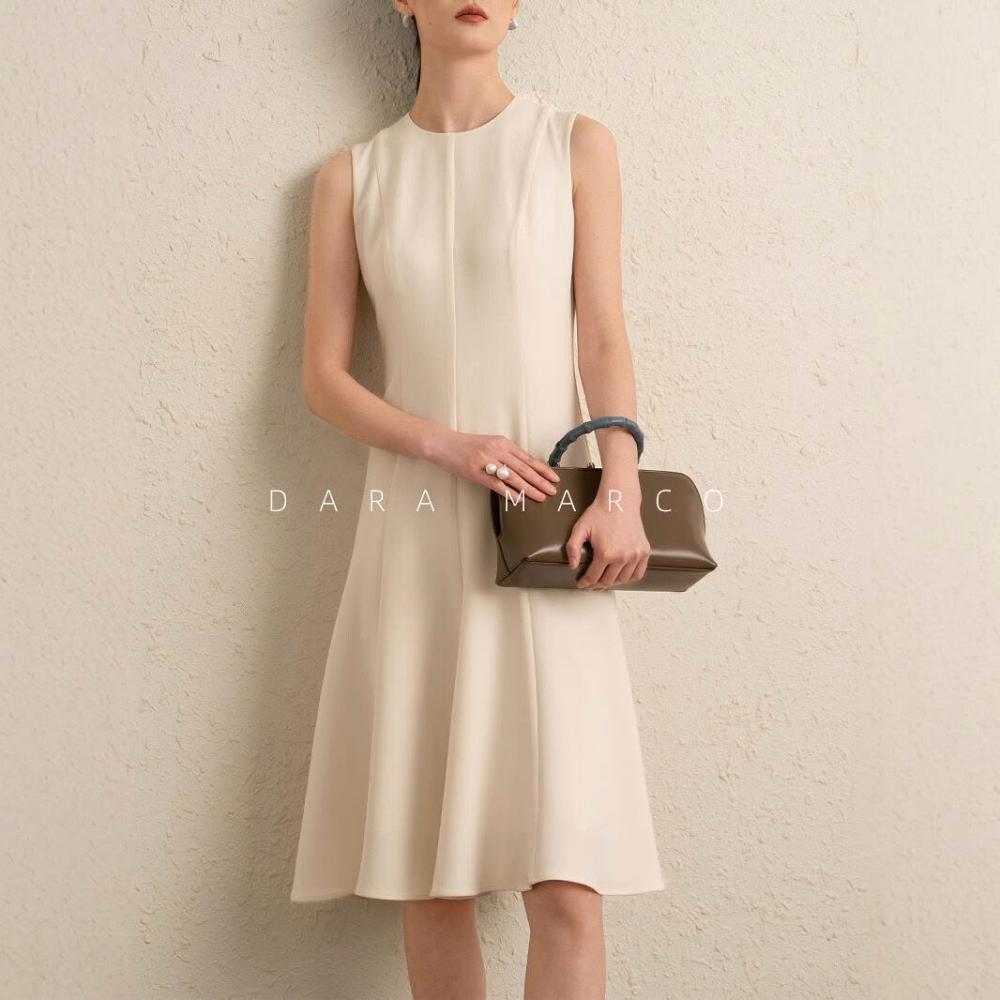 九宸衣櫥 醋酸肌理感連衣裙三醋脂纖維混紡無袖傘擺連衣裙