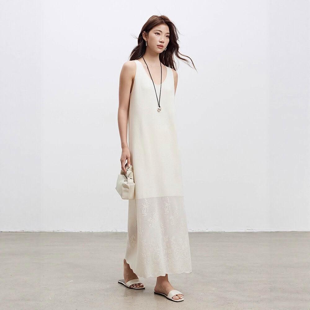 九宸衣櫥 文藝紙片人醋酸針織背心裙26春季新款女裝提花無袖羊毛吊帶連衣裙