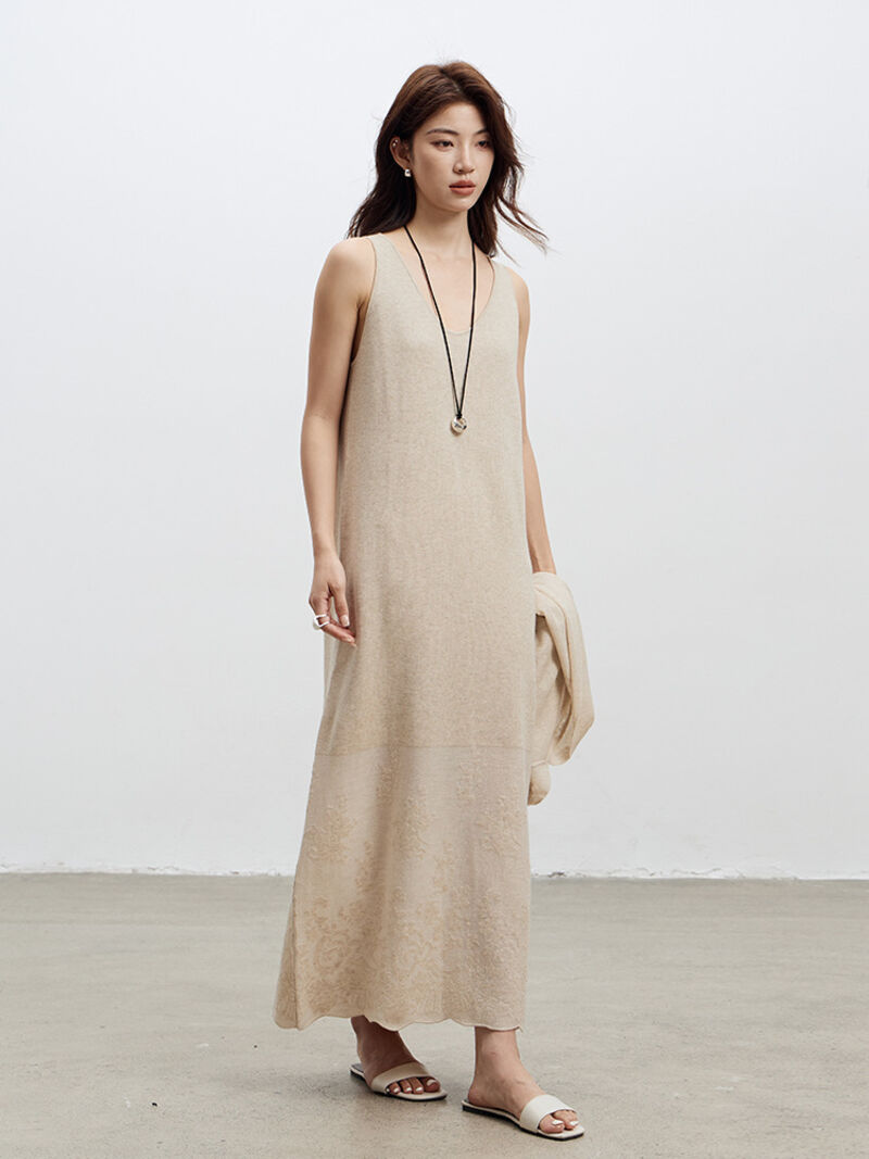 九宸衣櫥 文藝紙片人醋酸針織背心裙26春季新款女裝提花無袖羊毛吊帶連衣裙