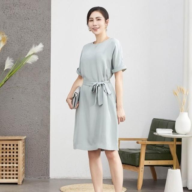 九宸衣櫥 夏季新款重磅真絲桑蠶絲連衣裙女氣質減齡系帶瘦身款A字裙子短袖