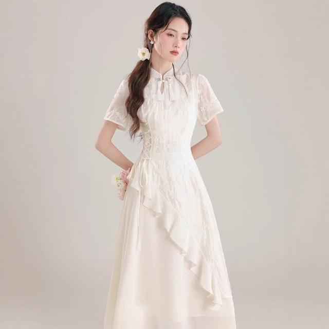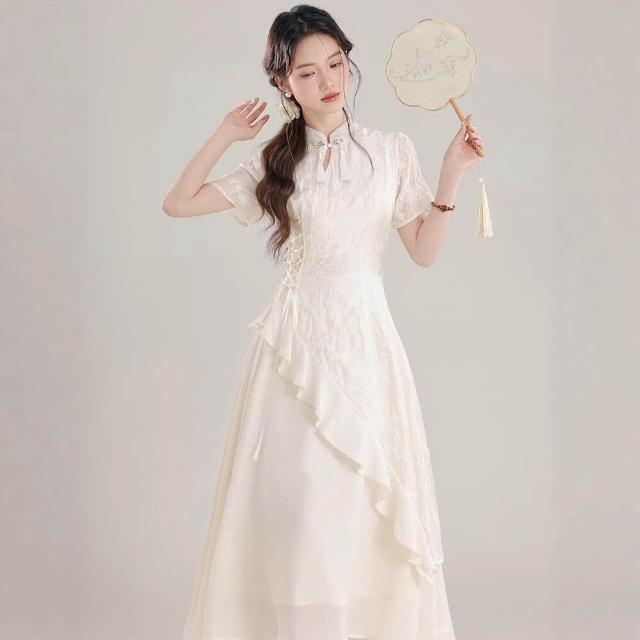 九宸衣櫥 女裝2026夏季國風不規則荷葉邊連衣裙新中式連衣裙改良旗袍裙子