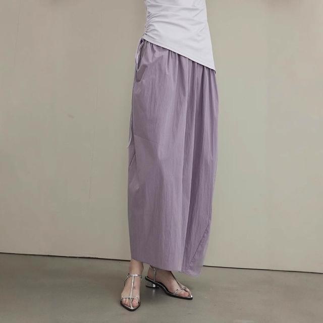 九宸衣櫥 法式繭型半身裙女2024夏新款香芋紫色高腰花苞長裙