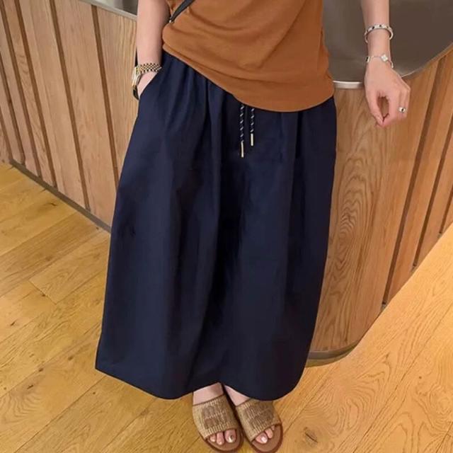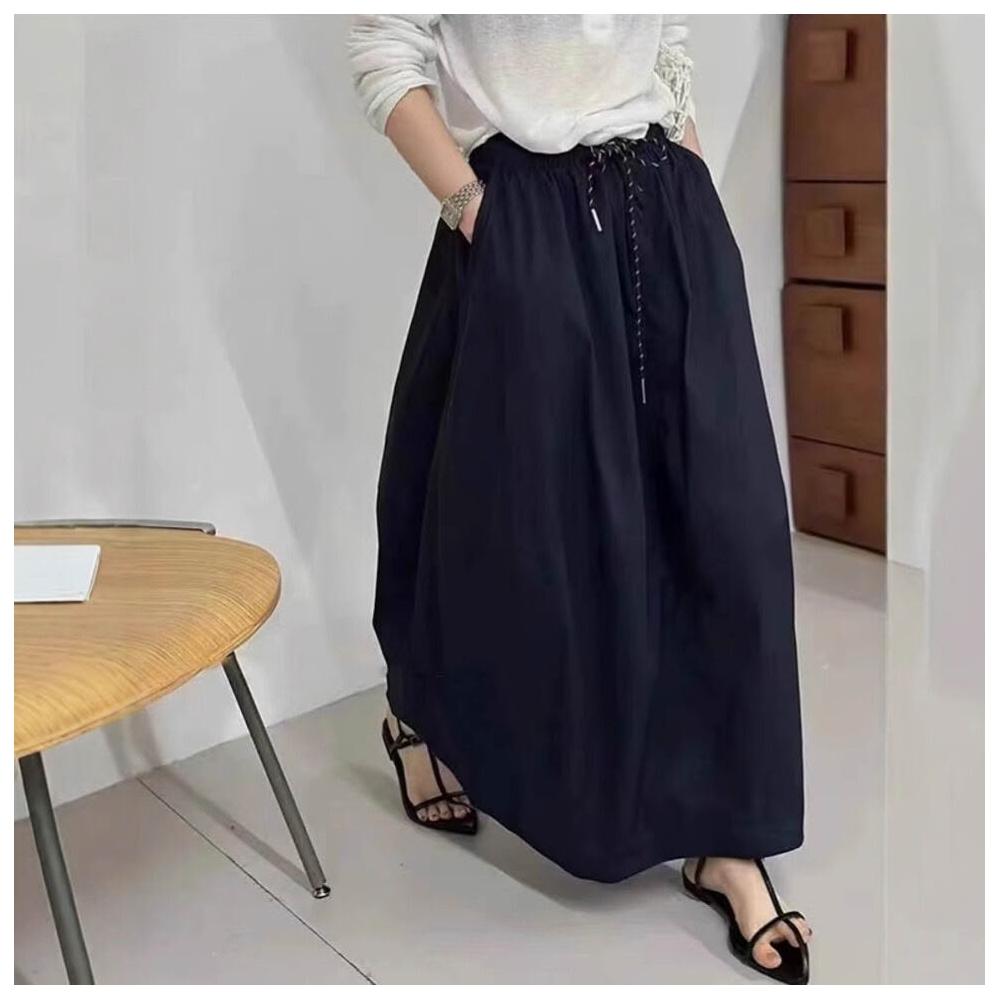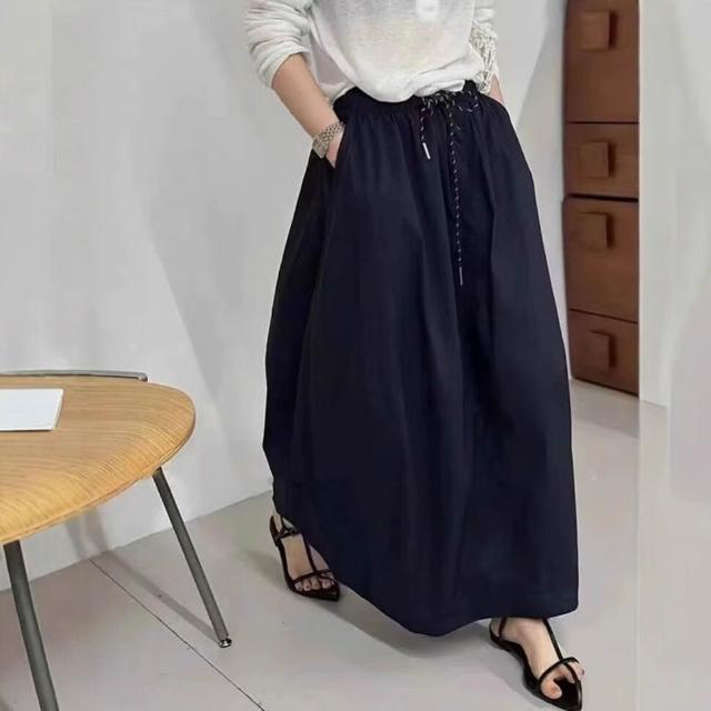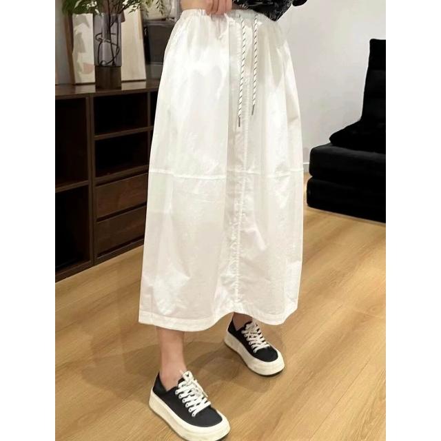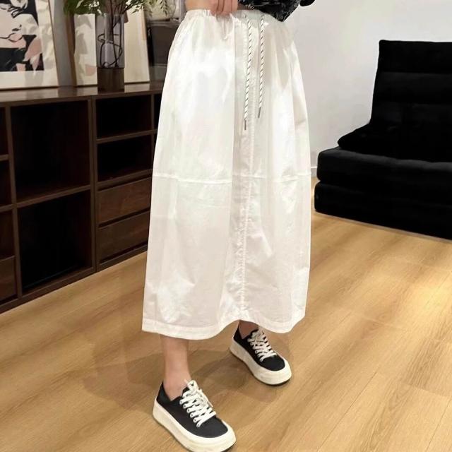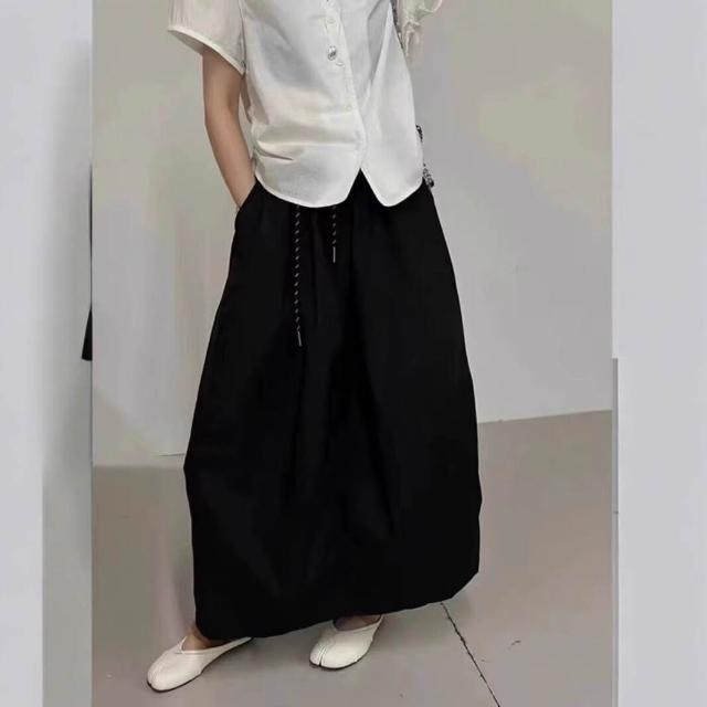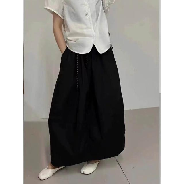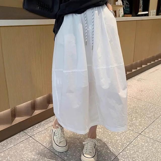 九宸衣櫥 高腰中長款A字半身裙女夏季新款寬松休閑百搭蓬蓬花苞水洗棉裙子