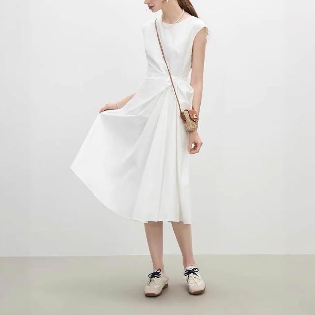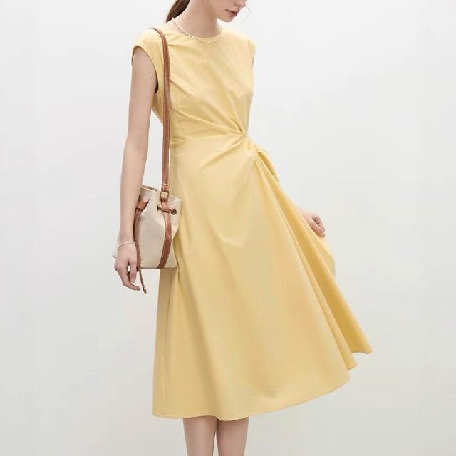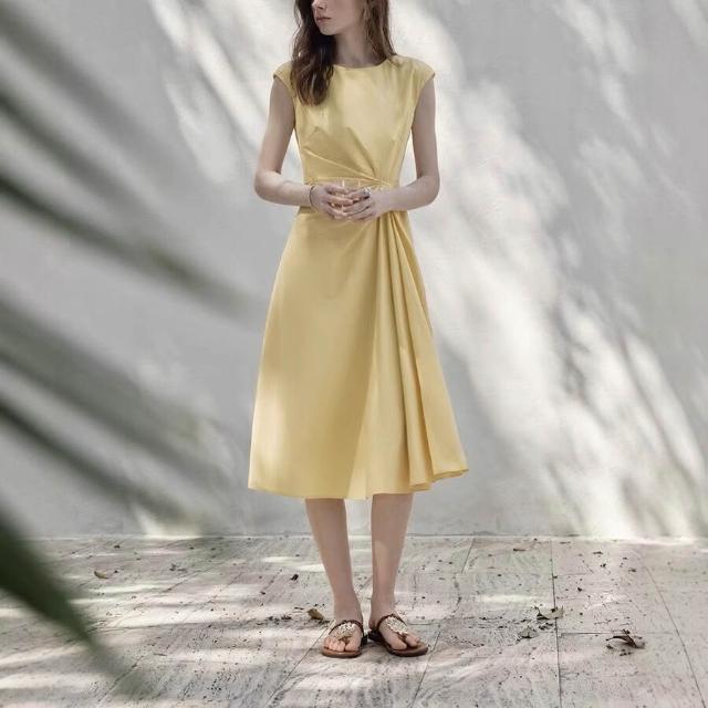 九宸衣櫥 黃色設計感無袖扭結收腰連衣裙女夏季2025新款小個子裙子