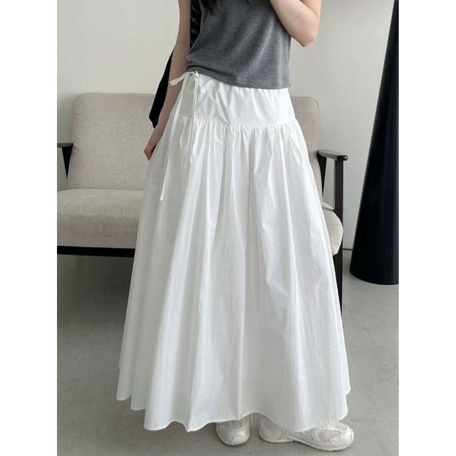 九宸衣櫥 藏肉主義 黑色半身裙女夏設計感高腰抽繩中長款a字裙