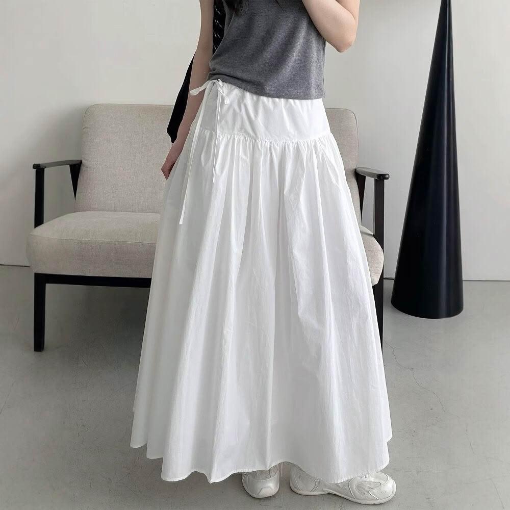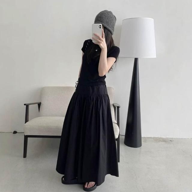九宸衣櫥 藏肉主義 黑色半身裙女夏設計感高腰抽繩中長款a字裙