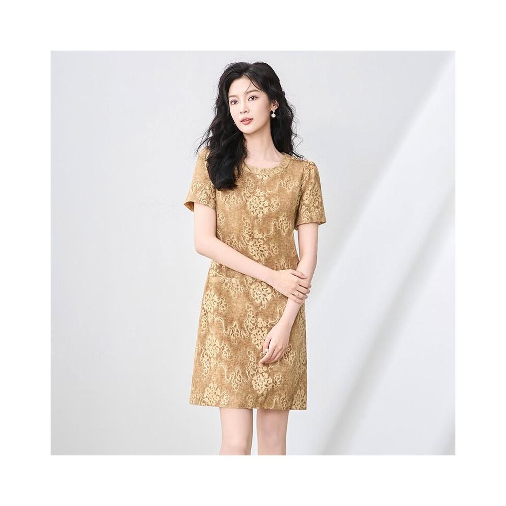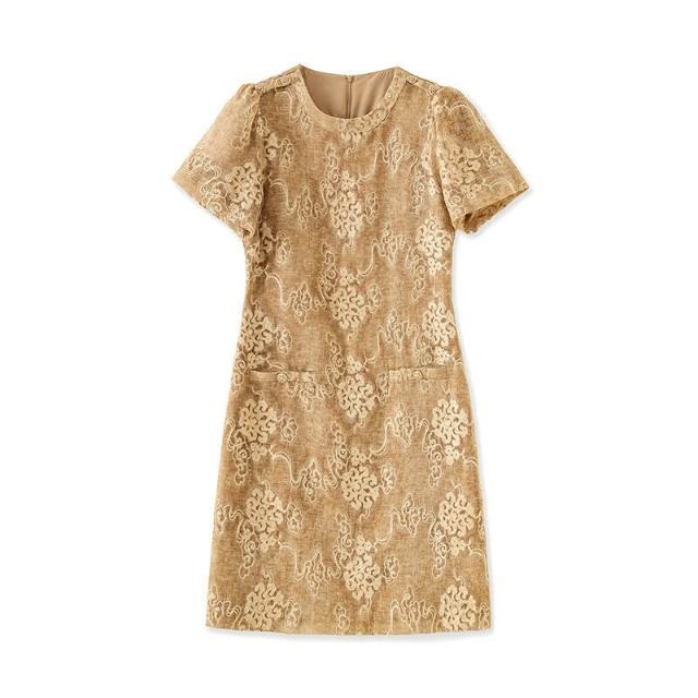 九宸衣櫥 2506801-法式輕奢仿亞麻刺繡圓領名媛氣質A字裙南油夏新款連衣裙