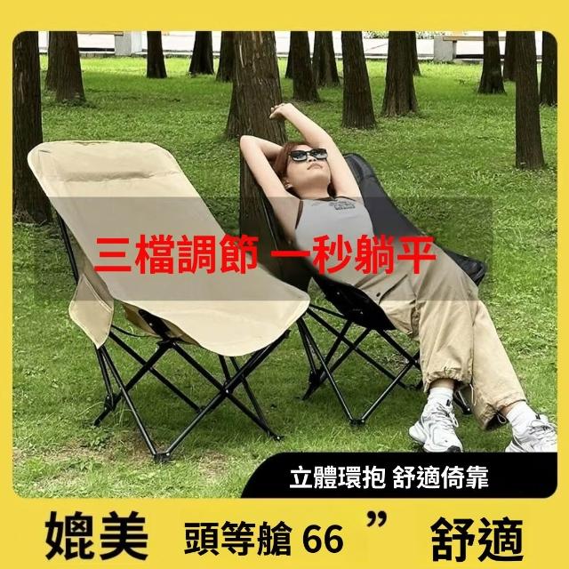 加高戶外折疊月亮椅三檔調節腿托躺椅野外露營野餐釣魚沙灘午休椅