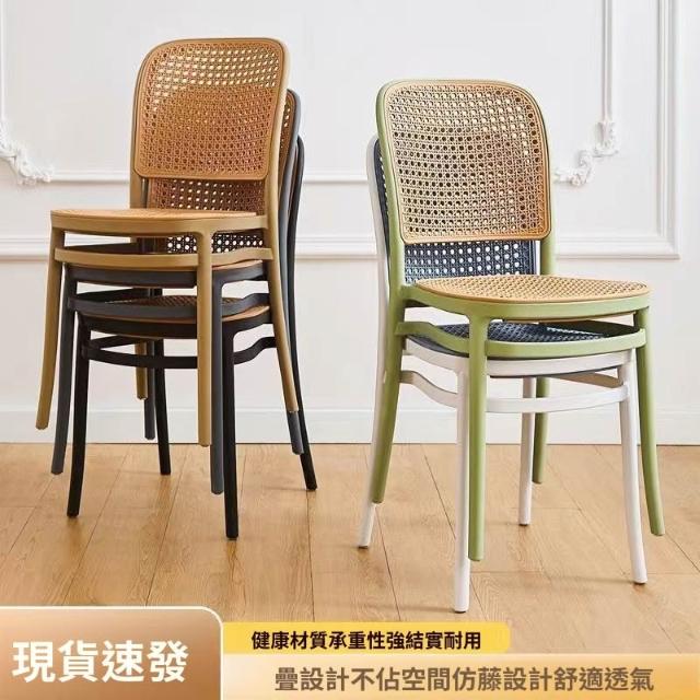 塑料藤編椅子意式ins簡約風凳子家用加厚餐椅透氣舒適商用靠背椅