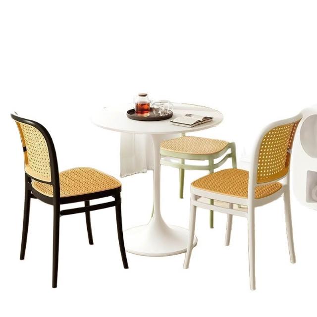 塑料藤編椅子意式ins簡約風凳子家用加厚餐椅透氣舒適商用靠背椅