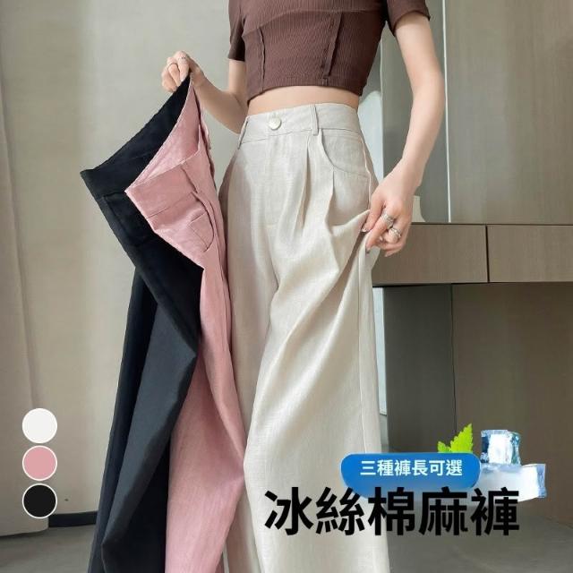 現貨現貨2026夏季新款薄款亞麻褲闊腿棉麻西裝冰絲高腰休閑褲女