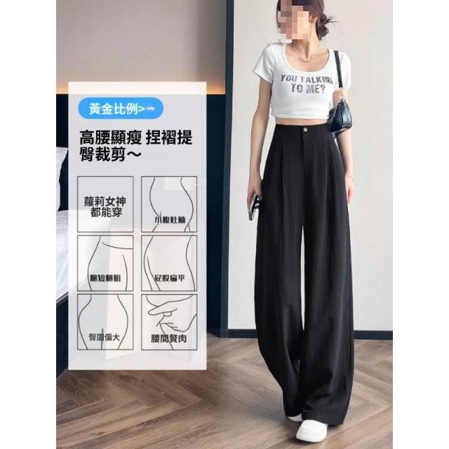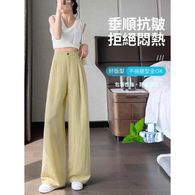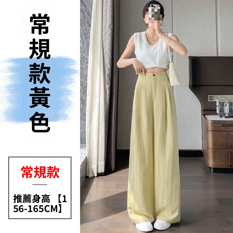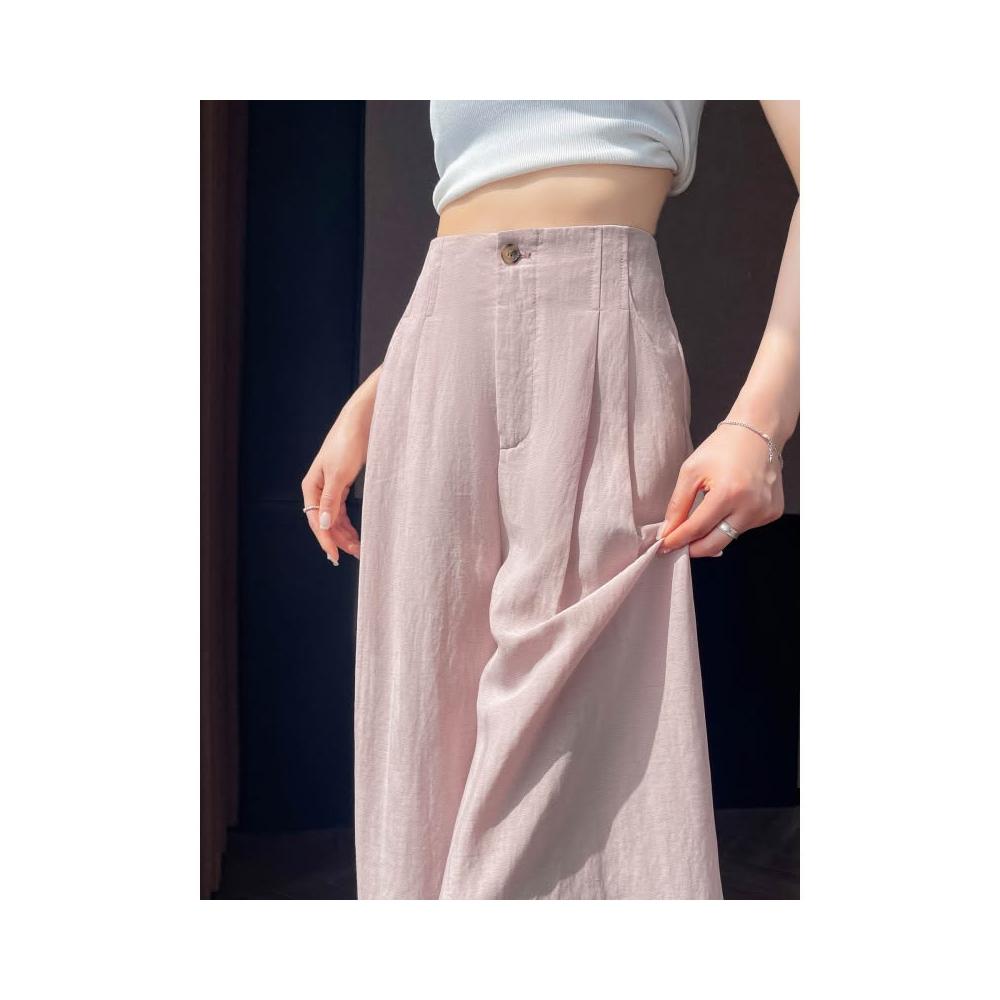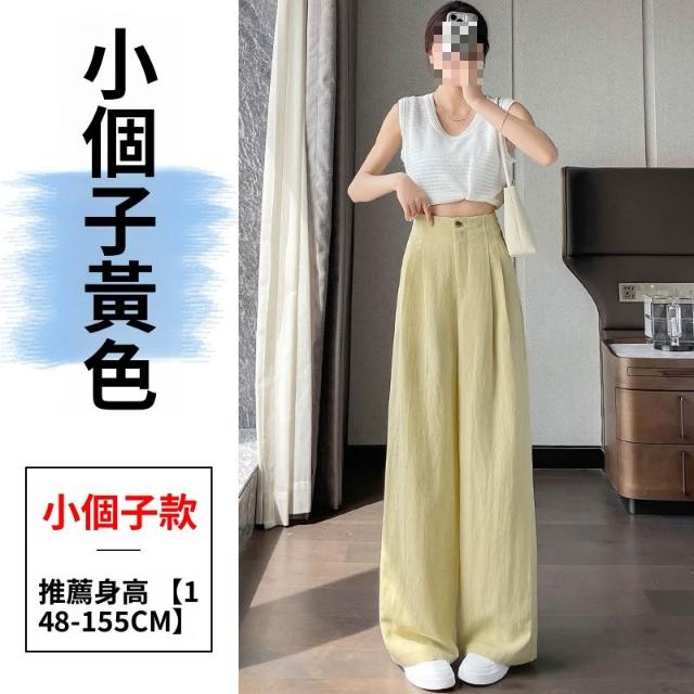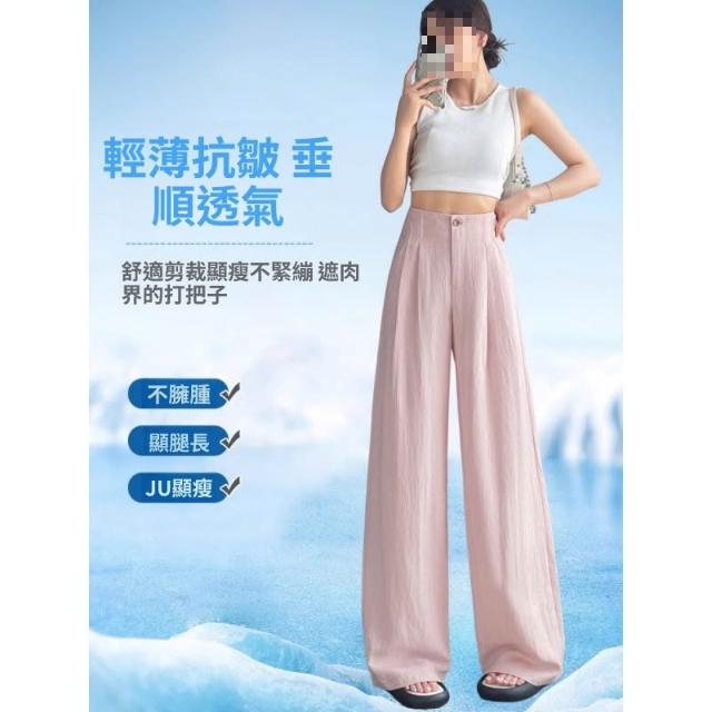 粉色抗皺天絲亞麻褲子女夏季薄款冰絲棉麻高腰垂感山本西裝闊腿褲