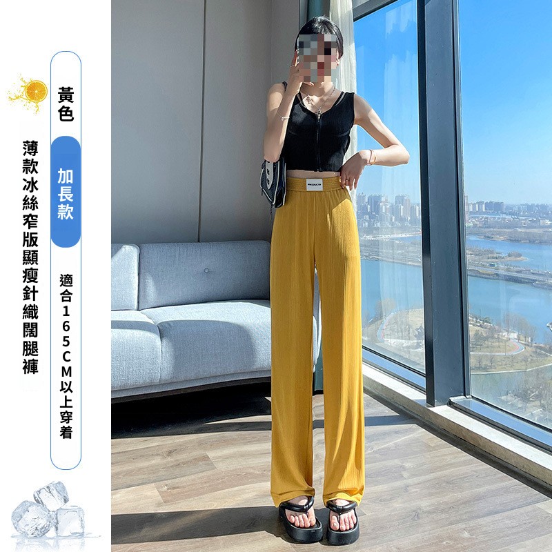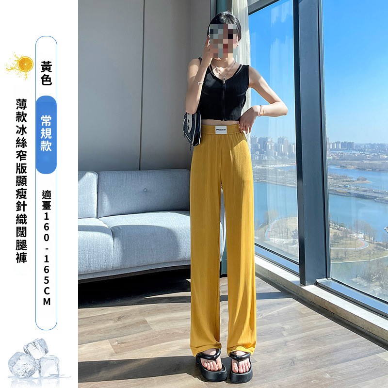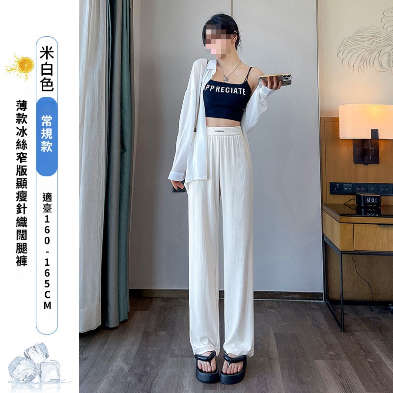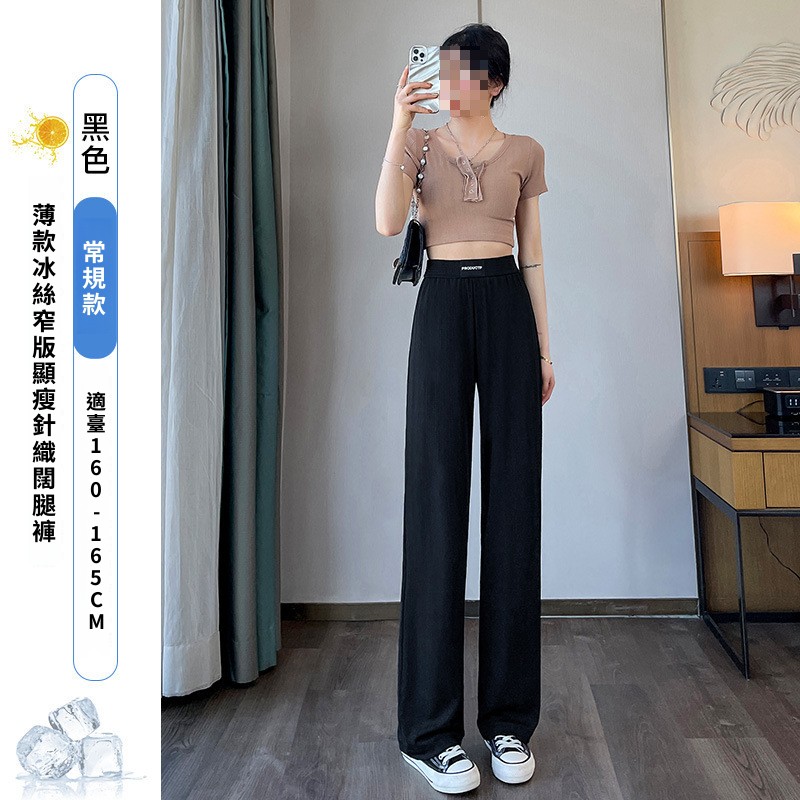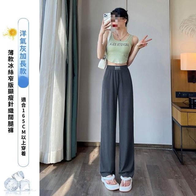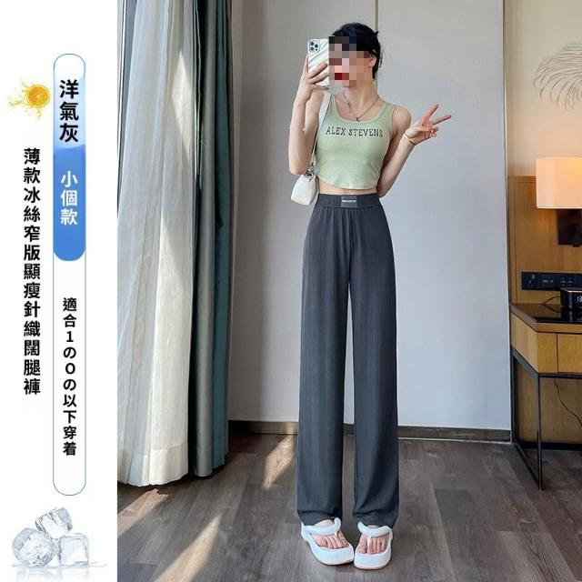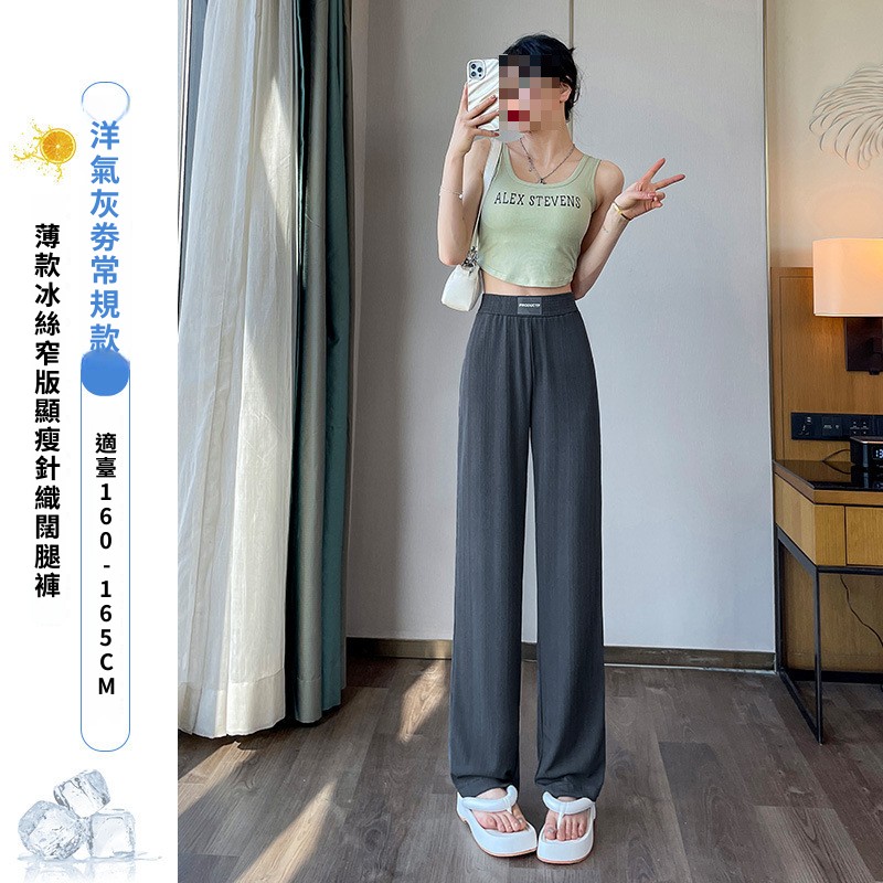 灰色窄版闊腿褲女夏季薄款高腰垂感直筒休閑褲小個子防曬冰絲褲子