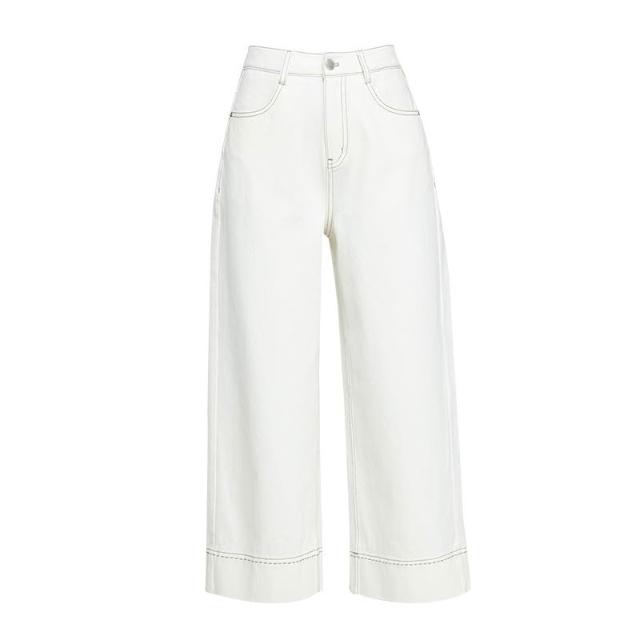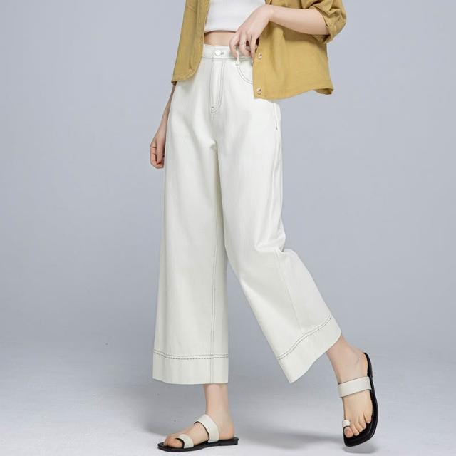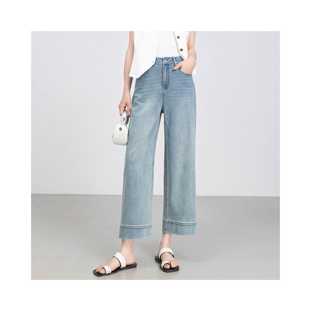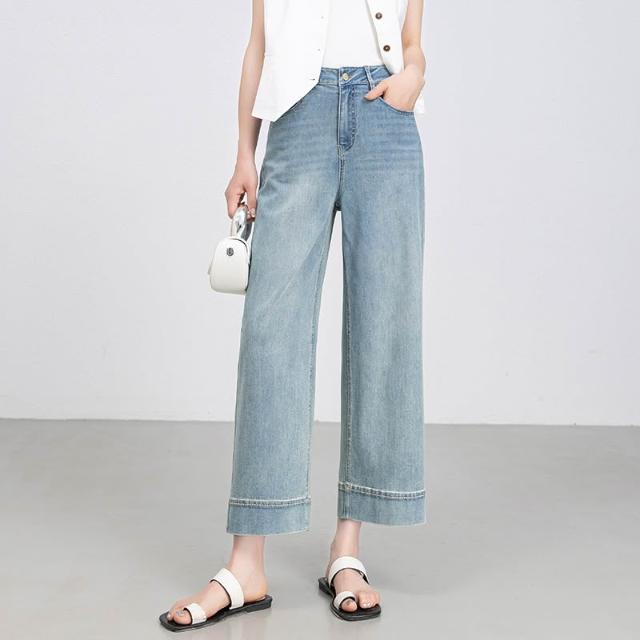 鑫閣淺藍色闊腿牛仔褲女夏季薄款寬松小個子九分翻邊直筒褲