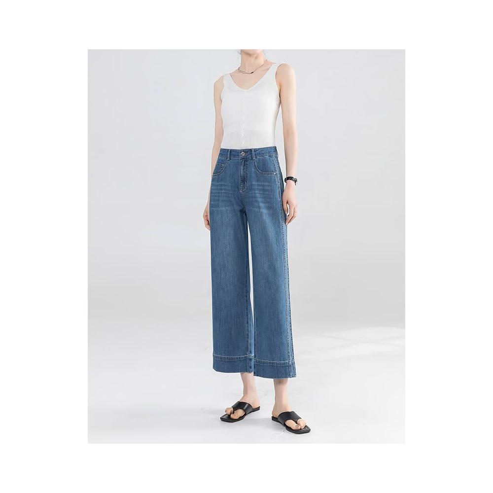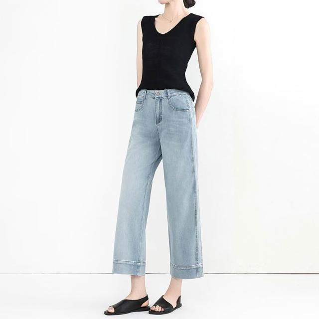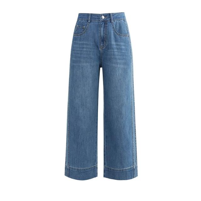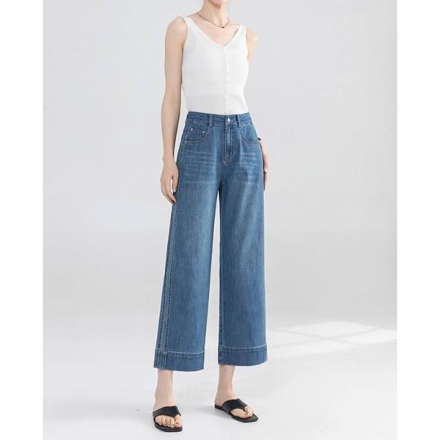 夏季薄款九分直筒牛仔褲女高腰時尚通勤小個子寬松顯瘦闊腿褲