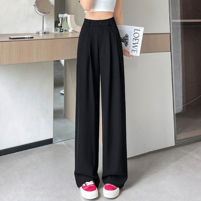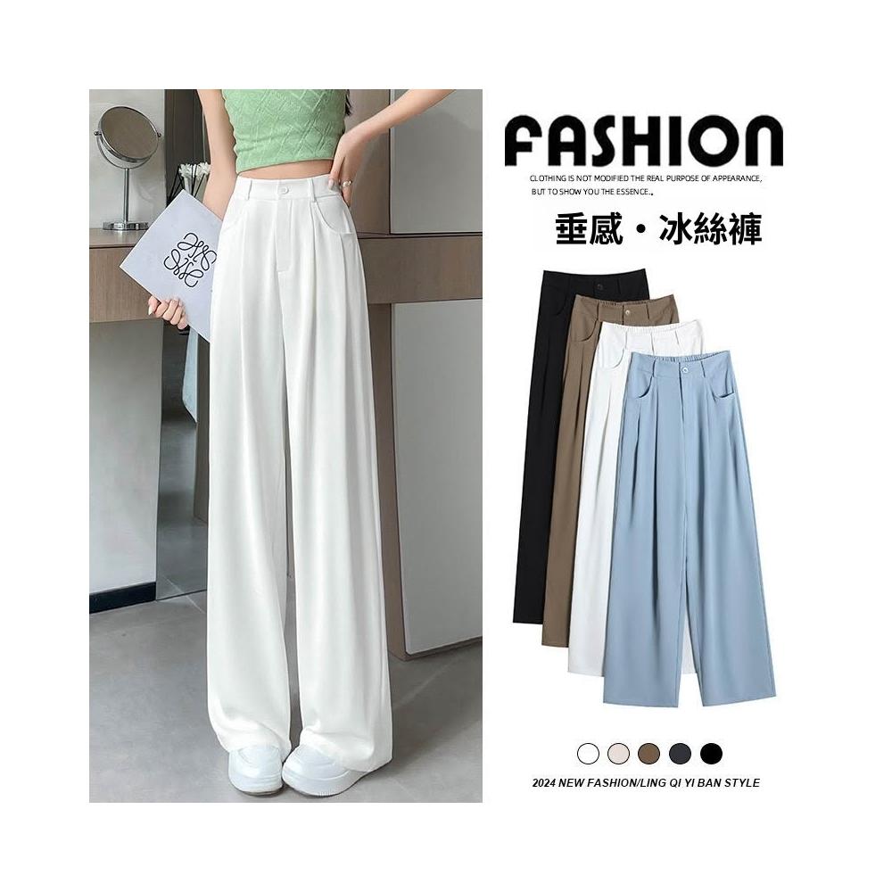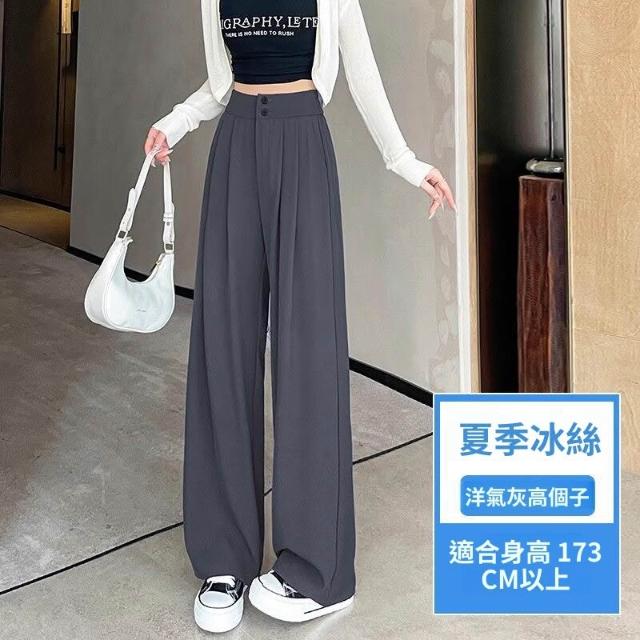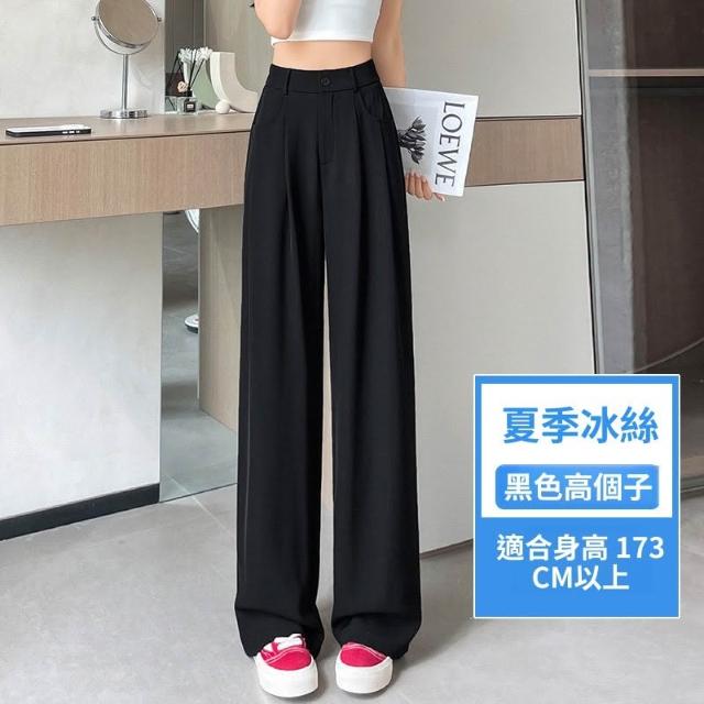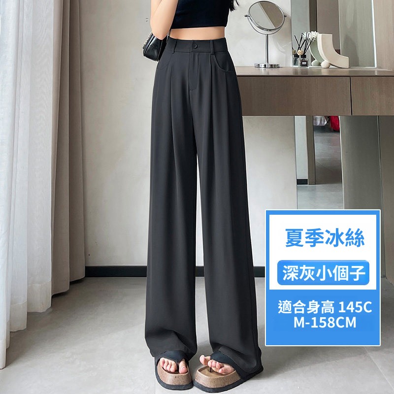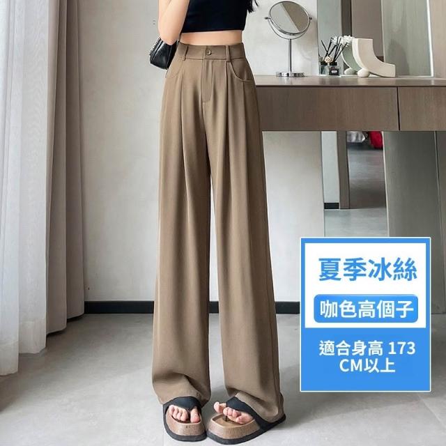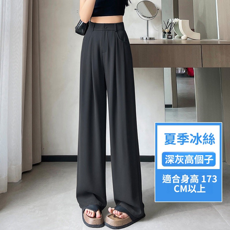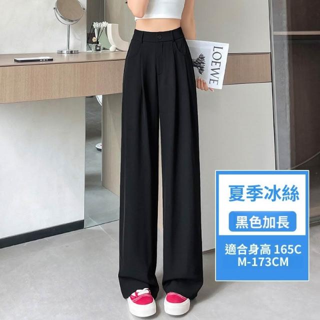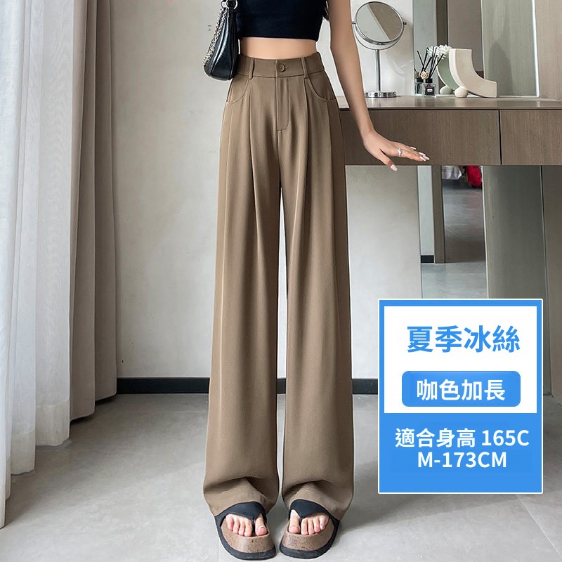 2026新款窄版闊腿褲女夏季薄款高級感高腰垂感拖地直筒冰絲西裝褲