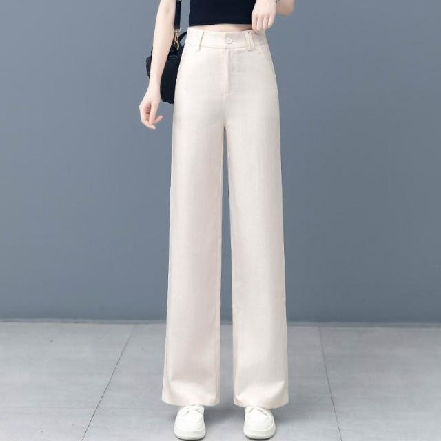 棉麻休閑褲女夏季薄款2026新款高腰窄版闊腿天絲亞麻小個子直筒褲