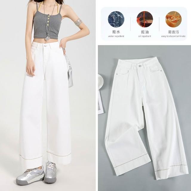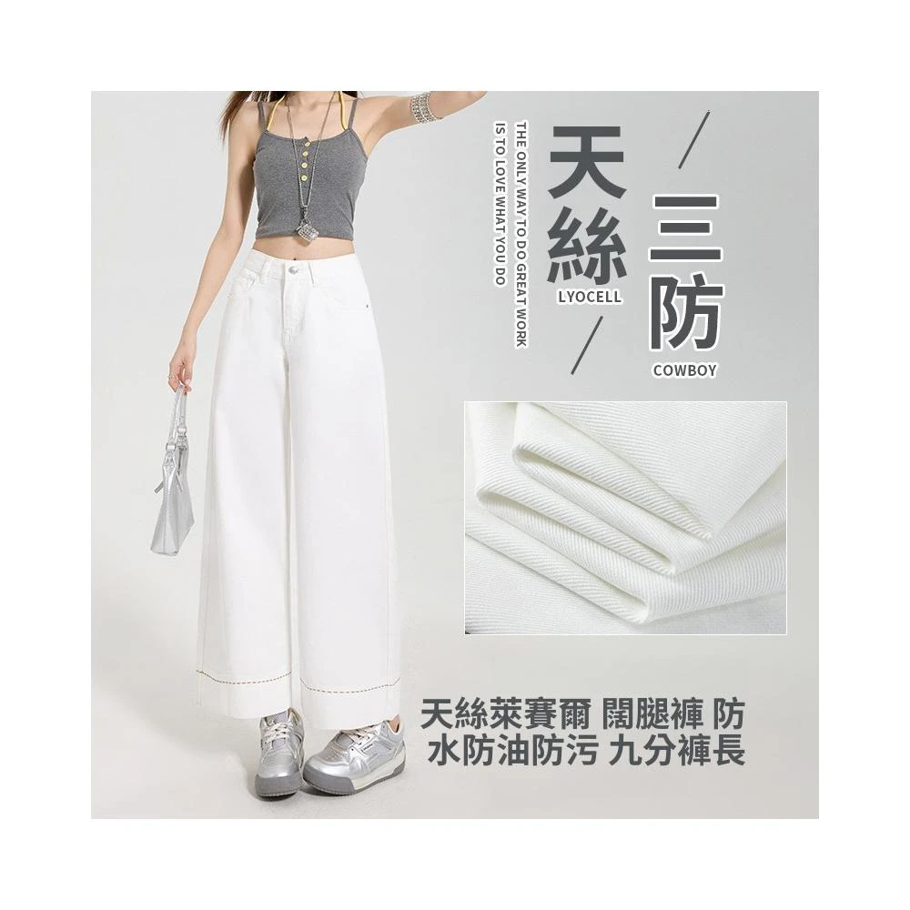 白色三防天絲九分闊腿牛仔褲女夏季薄款2026新款小個子高腰奶奶褲