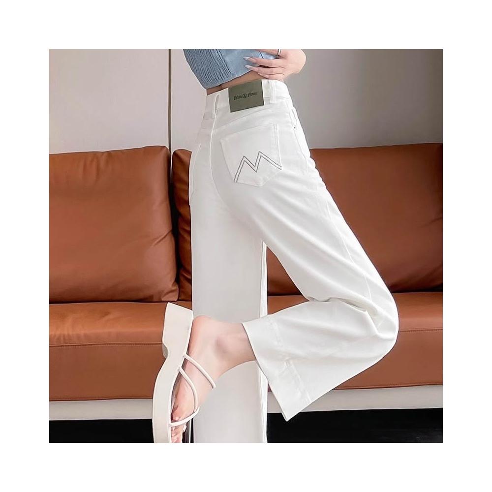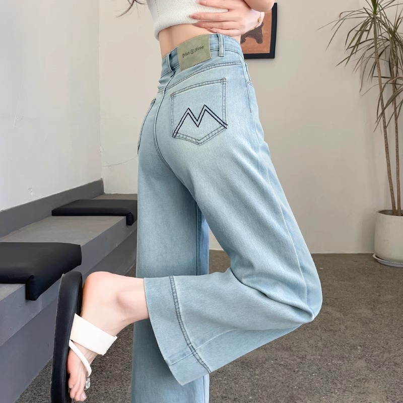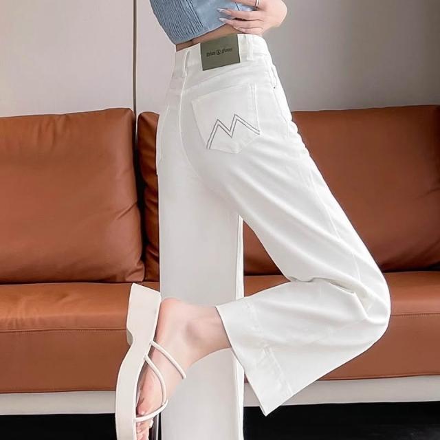 白色天絲闊腿軟牛仔褲女2026夏季薄款彈力小個子萊賽爾奶奶直筒褲