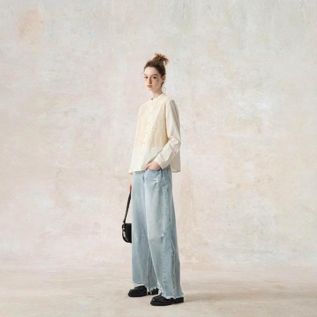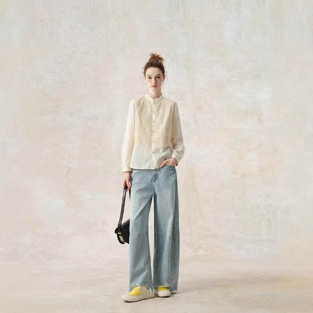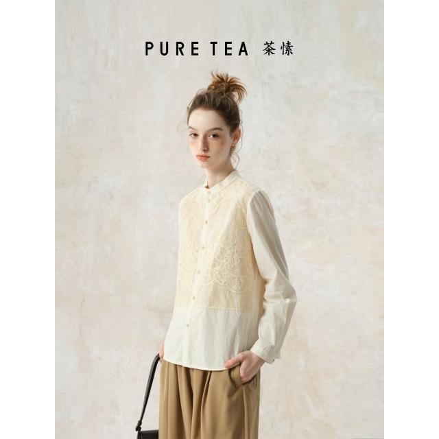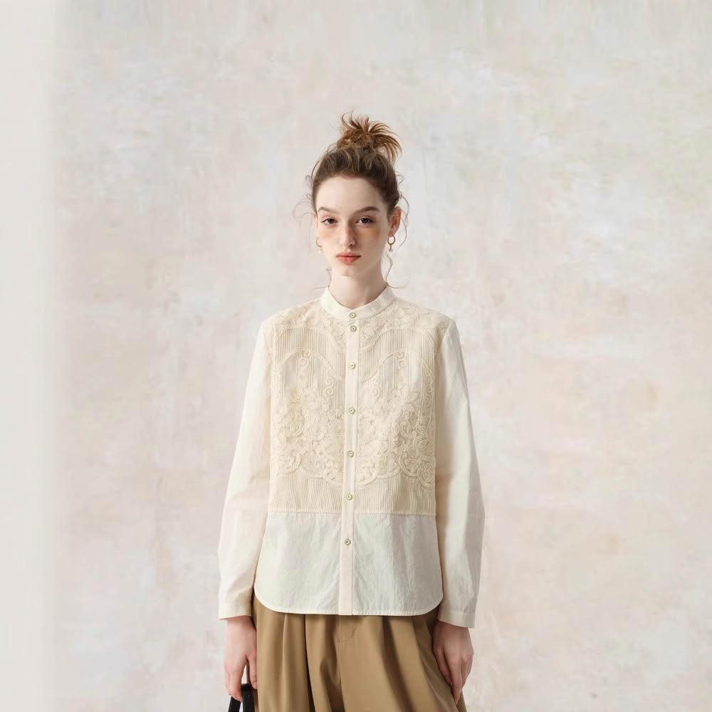 含稅 免運 2026刺繡新中式襯衫女設計感2025早春新款國風襯衣純棉長袖上衣