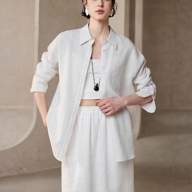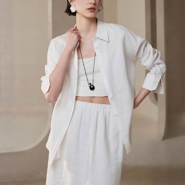 含稅 免運 26上新老錢風白色亞麻襯衫女春夏寬松襯衣空調衫薄外套