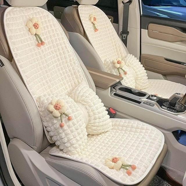 生活首選汽車坐墊四季通用可愛女士蕾絲泡泡車載座墊簡約座椅套高級感泡芙
