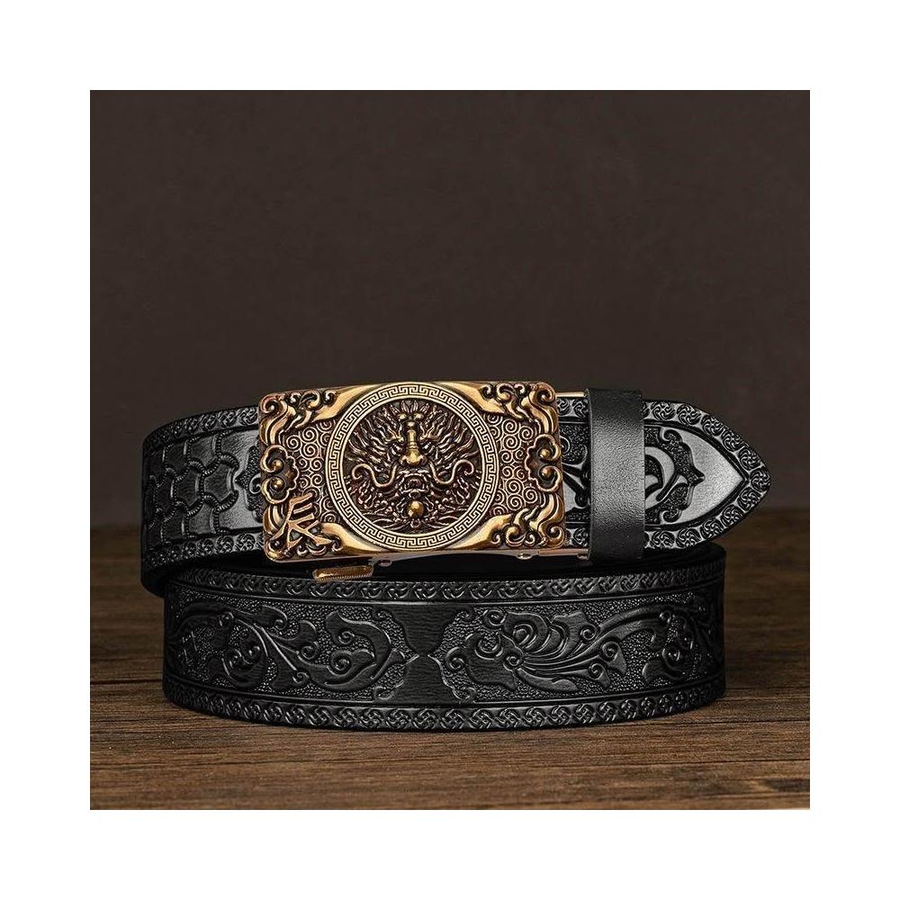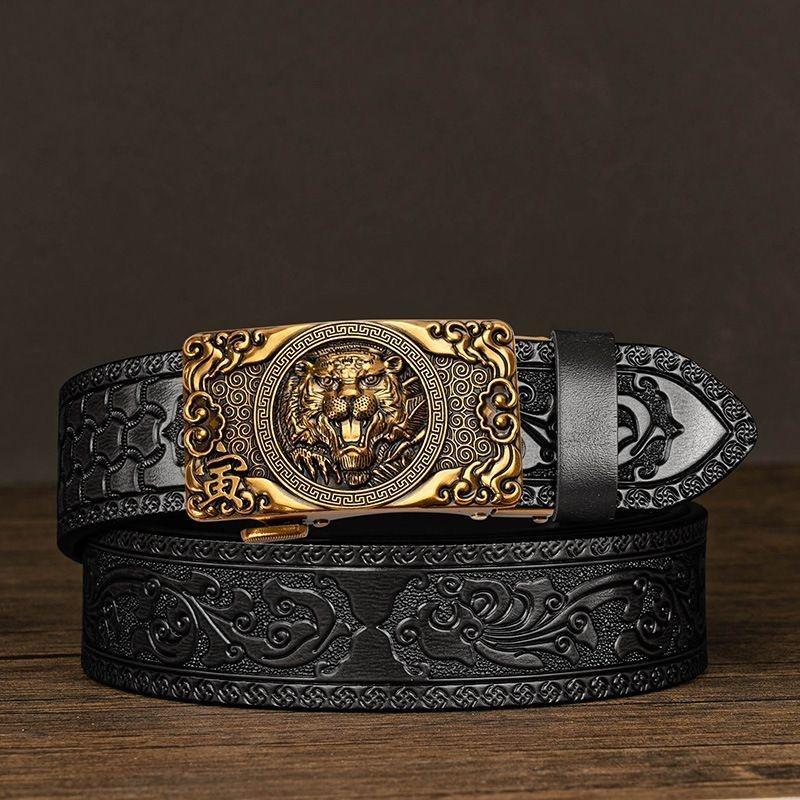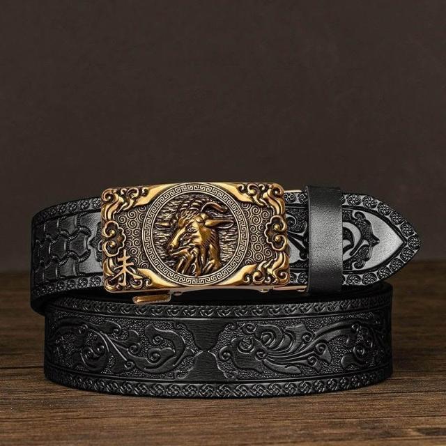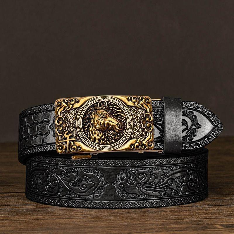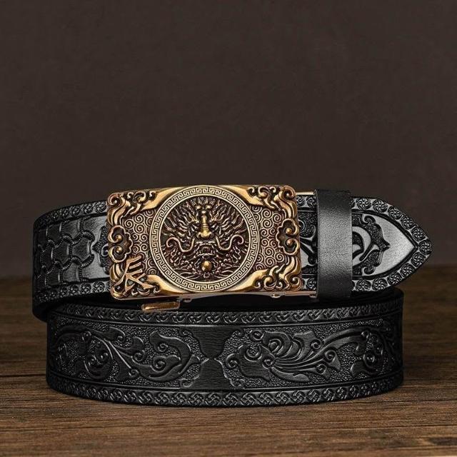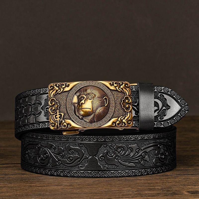 生活優選牛皮男士皮帶雕花唐草紋新款自動扣真皮腰帶休閒十二生肖個性褲帶