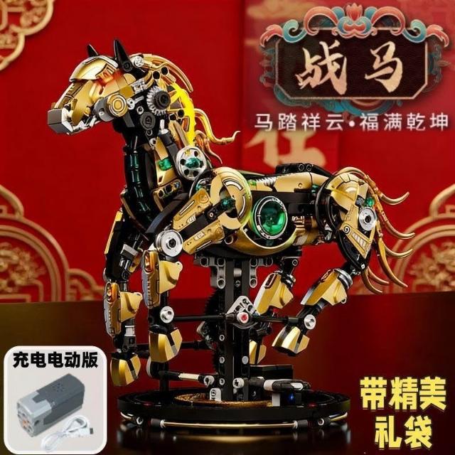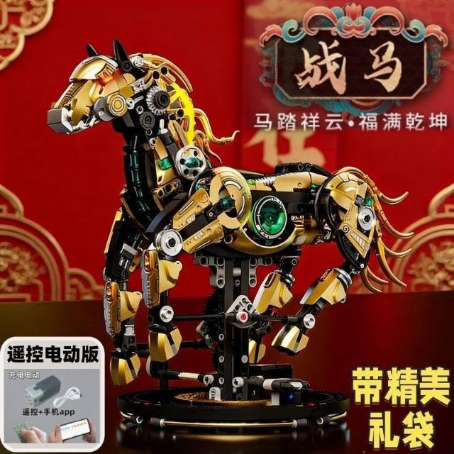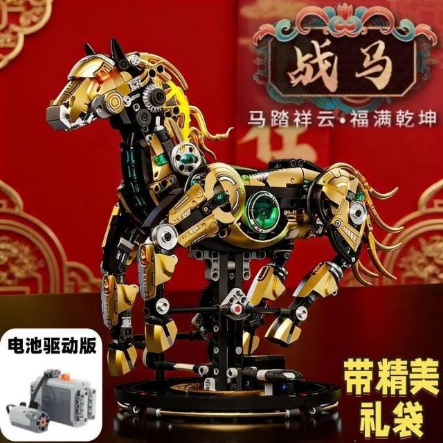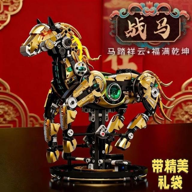 生活首選2026年新款機械馬生肖積木兼容樂高拼裝益智玩具擺件男孩新年禮物