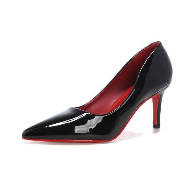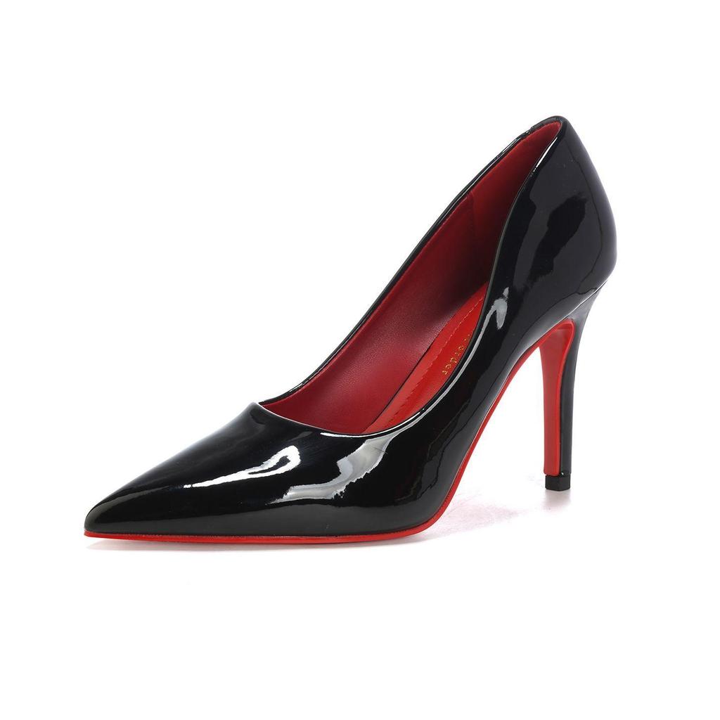 生活首選瑪麗珍品牌紅底高跟鞋魅惑御姐漆皮性感純欲風黑色職業細跟單鞋女