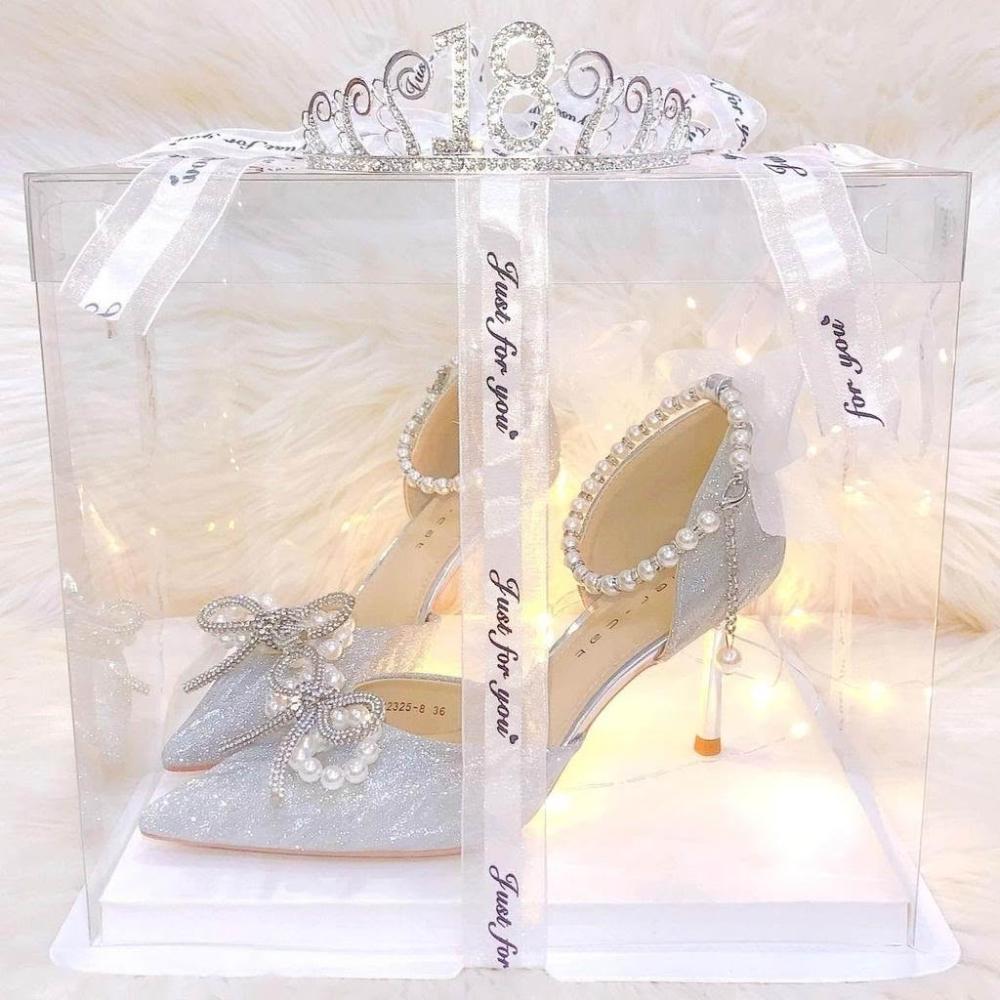 生活首選新款禮服氣質高跟鞋女成年水晶鞋禮服兩穿婚鞋尖頭細跟蝴蝶結單鞋