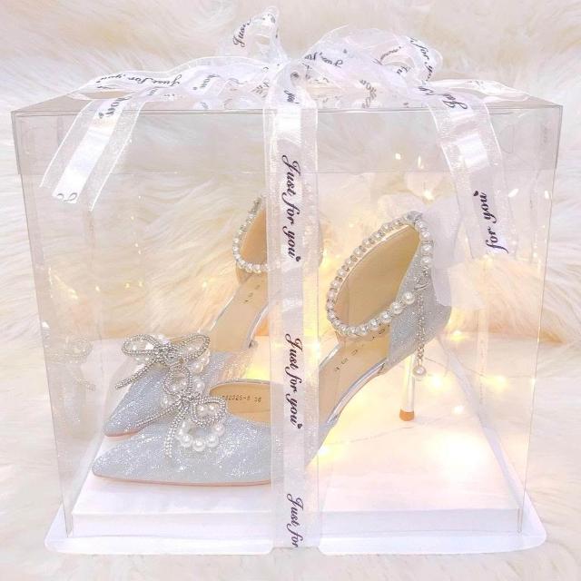 生活首選新款禮服氣質高跟鞋女成年水晶鞋禮服兩穿婚鞋尖頭細跟蝴蝶結單鞋