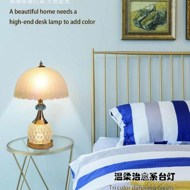 生活首選婚慶輕奢水晶檯燈現代歐式臥室牀頭燈浪漫的歐式臥室裝飾燈