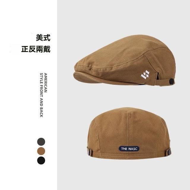 生活首選新款正反戴貝雷帽子男文藝風百搭前進帽短檐痞帥復古鴨舌畫家帽潮