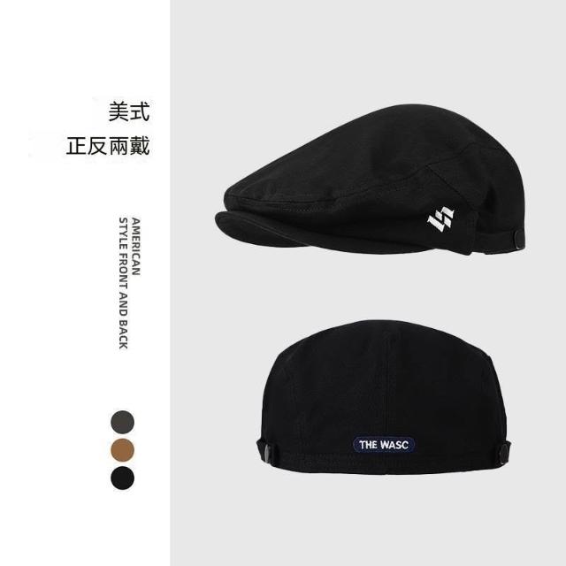 生活首選新款正反戴貝雷帽子男文藝風百搭前進帽短檐痞帥復古鴨舌畫家帽潮