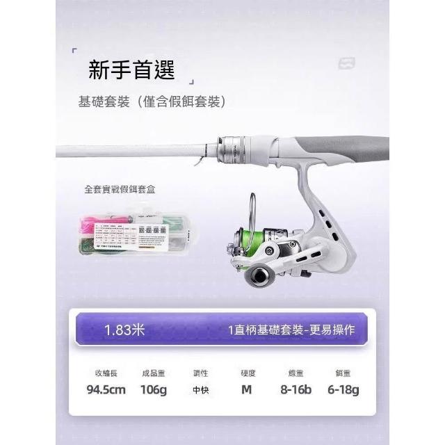 生活首選小白杆路亞入門套裝海釣碳素路亞竿新手套裝全套釣魚直柄槍柄魚竿