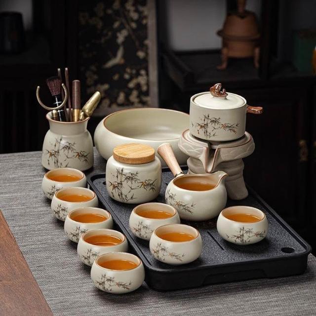 生活首選新款家用功夫茶具套裝汝窯高檔陶瓷懶人自動泡茶神器茶杯茶道套裝