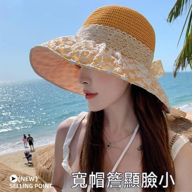 生活首選2026款夏季海邊度假防曬遮陽草帽時尚可摺疊大帽檐蕾絲雛菊彩膠帽