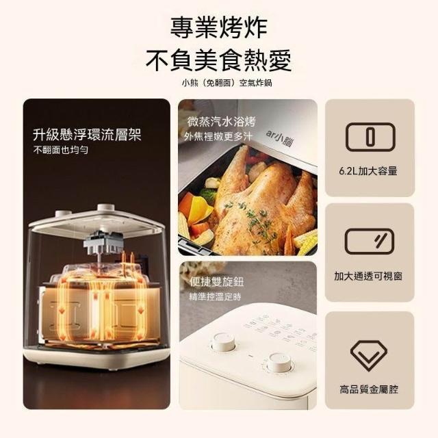 生活首選小熊6.2L空氣炸鍋可視多功能電炸鍋自動斷電大容量免翻面微蒸汽烤