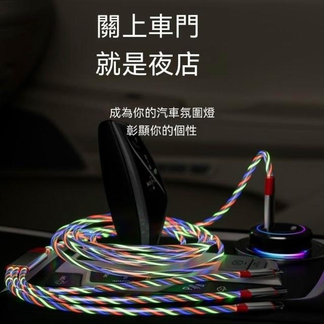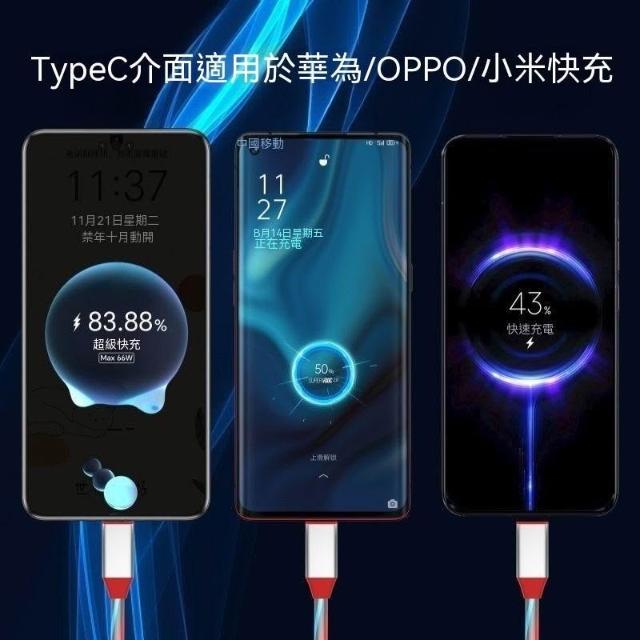 生活首選加長2米一拖三流光數據線適用蘋果16華爲66W快充OPPOvivo車載充電