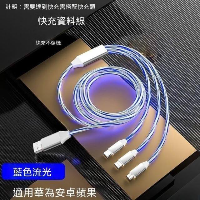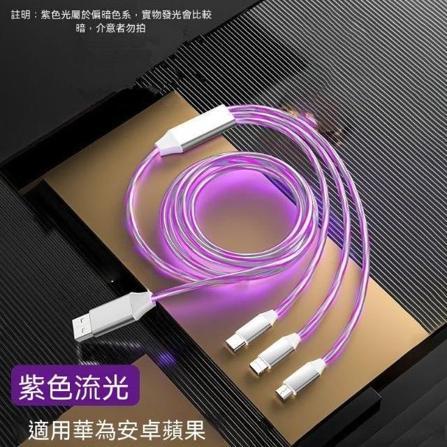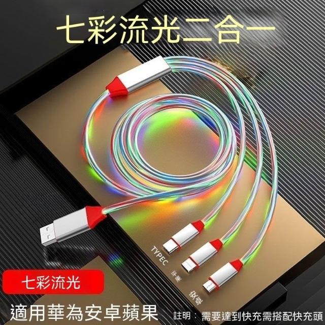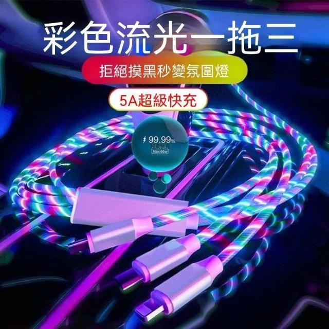 生活首選加長2米一拖三流光數據線適用蘋果16華爲66W快充OPPOvivo車載充電